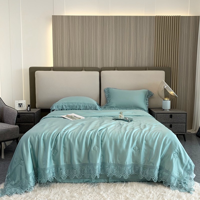 (总)榻尚家居 2025新款天丝床盖夏被夏凉被空调被四件套-佩利兹,佩利兹床盖夏被四件套-粉色,佩利兹床盖夏被四件套-香槟