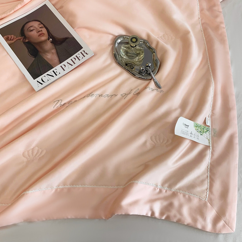 (总)榻尚家居 2025新款天丝床盖夏被夏凉被空调被四件套-佩利兹,佩利兹床盖夏被四件套-粉色,佩利兹床盖夏被四件套-香槟