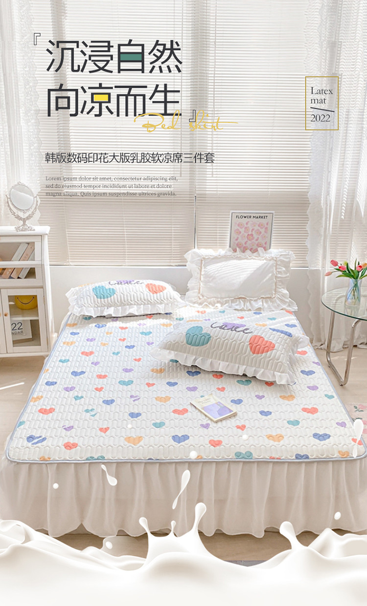 商品名称:佰亿莱 2024新款韩版床裙款乳胶凉席三件套 彩色爱心