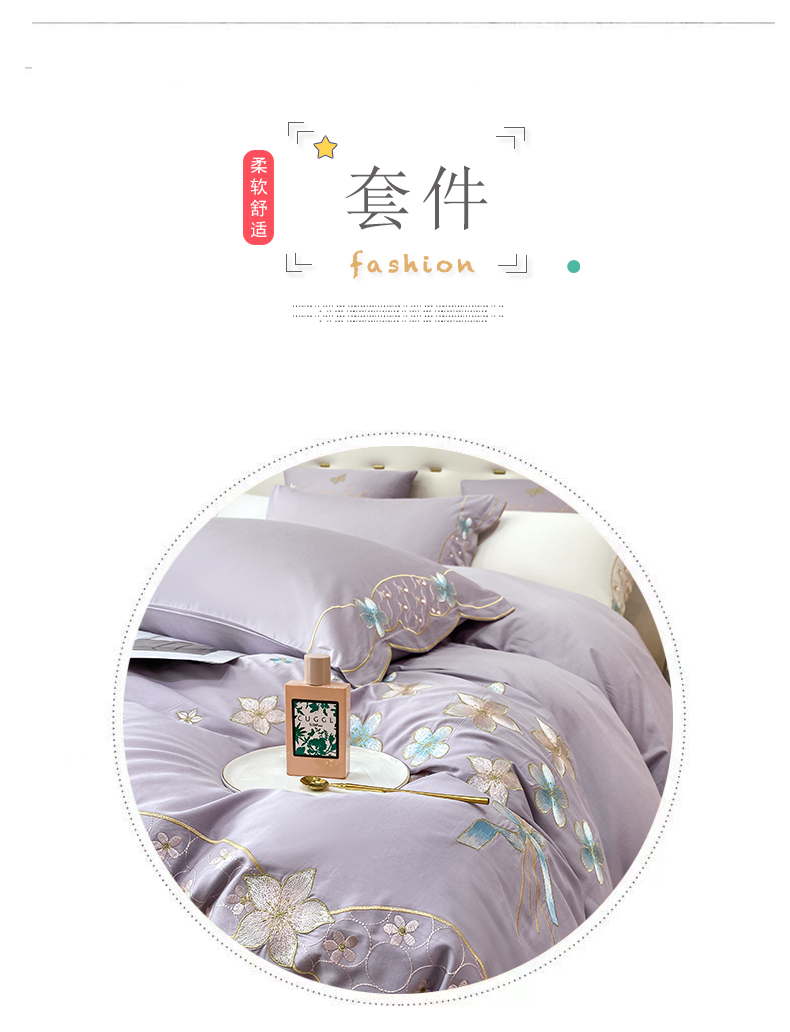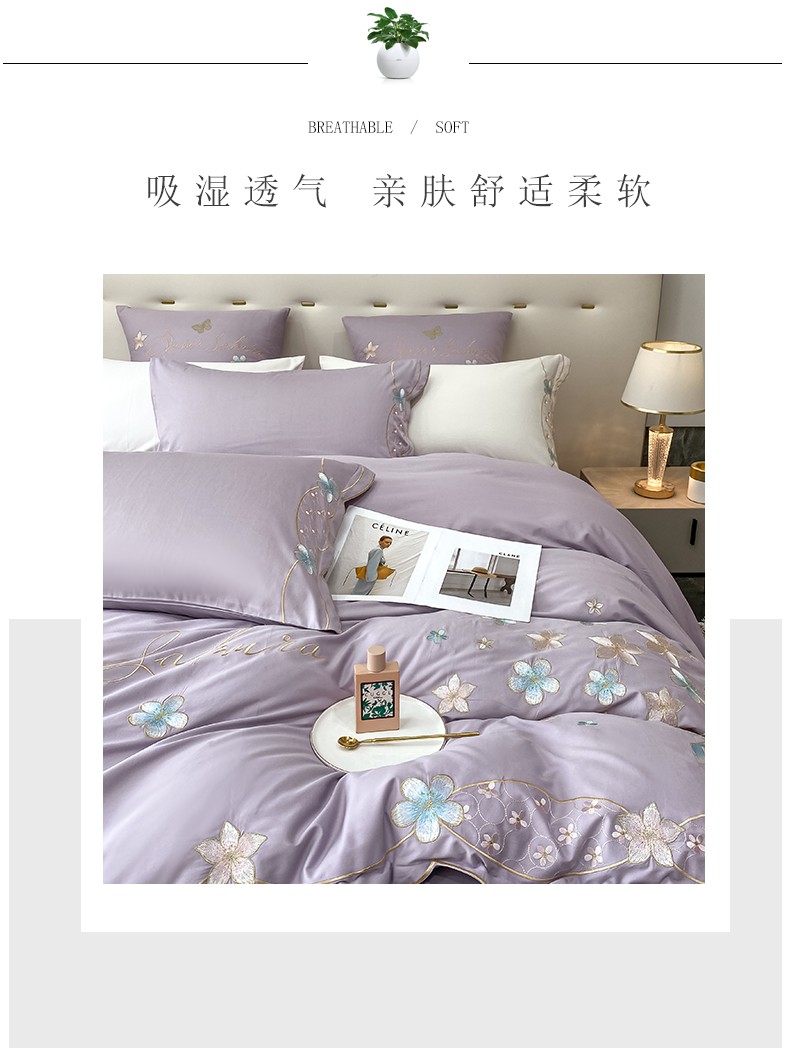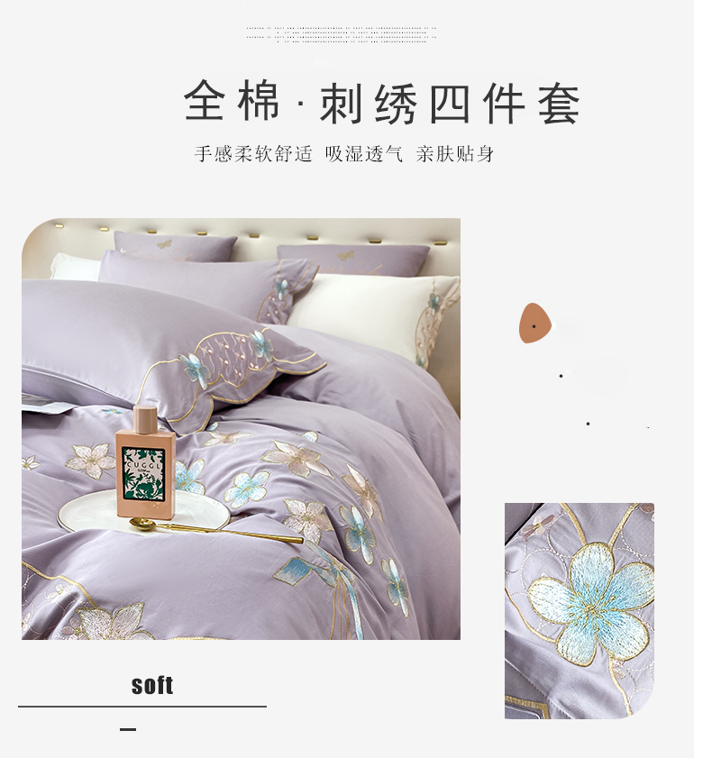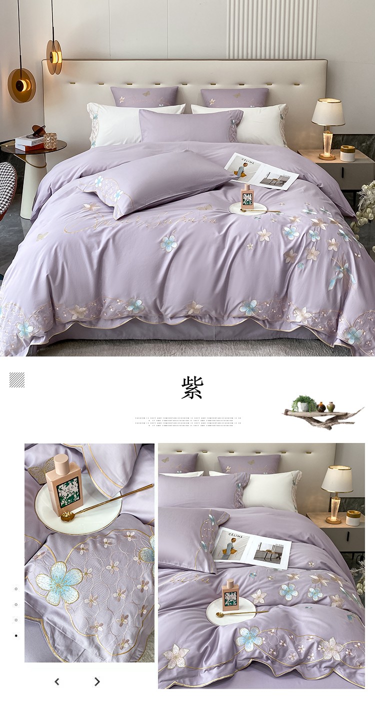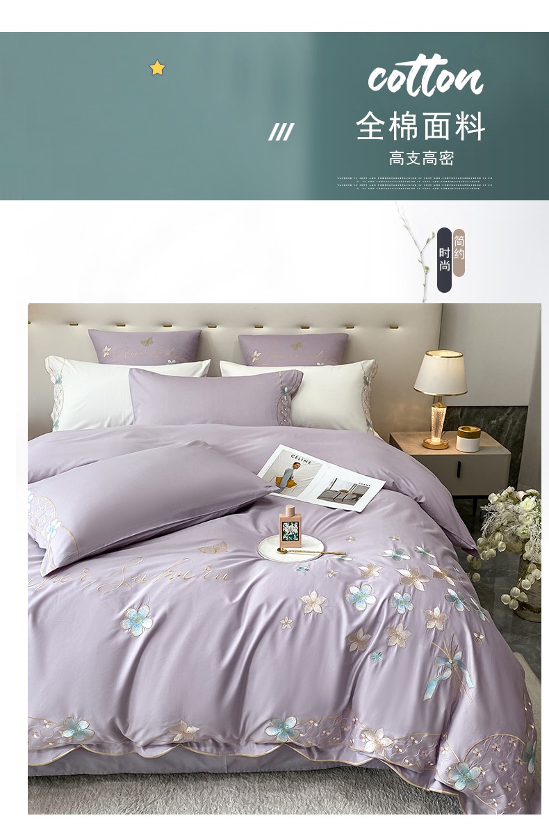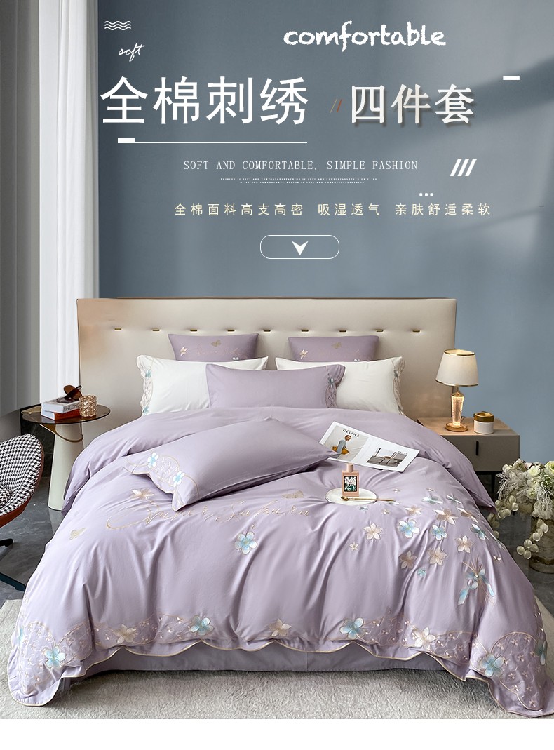 商品名称:安妮 2022新款全棉刺绣四件套 花颜悦色-紫