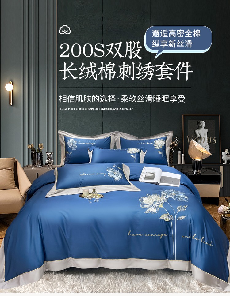 200支新款长绒棉宽边刺绣四件套