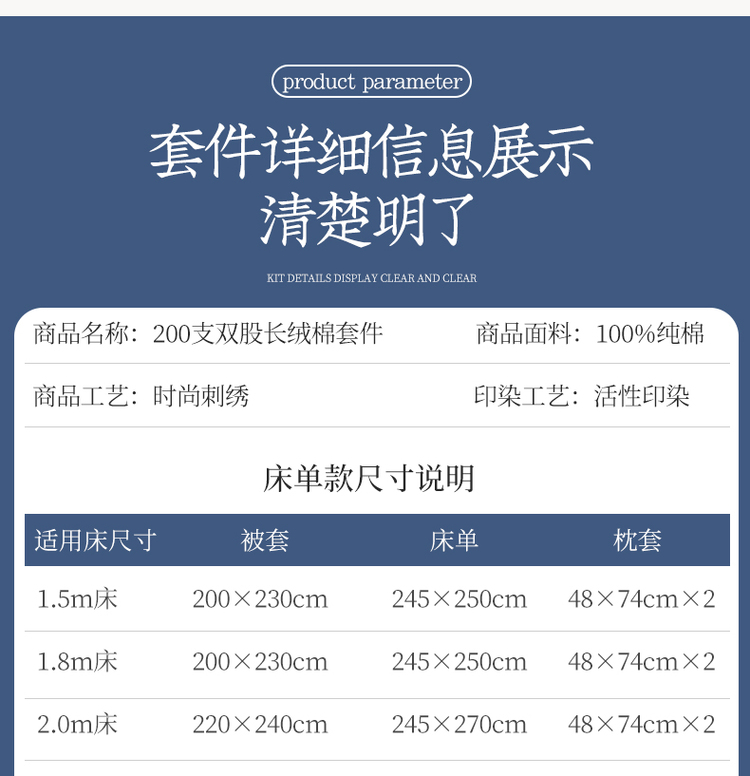 商品名称:200支新款长绒棉宽边刺绣四件套