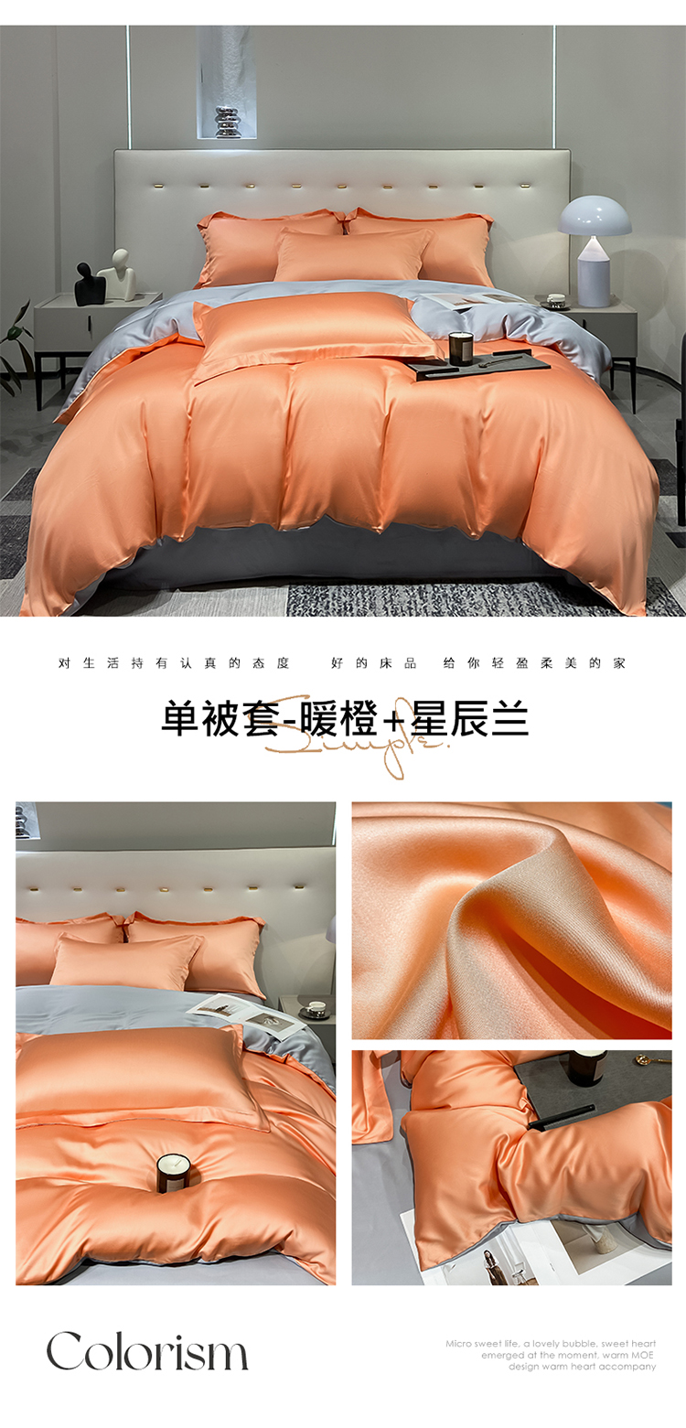 • 91家纺网 家纺一手货源 找家纺 涵宸家纺  2023新款天丝ᵀᴹ纯色-单被套 单被套-暖橙+星辰兰