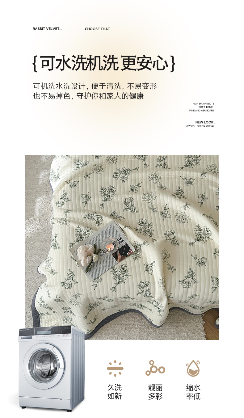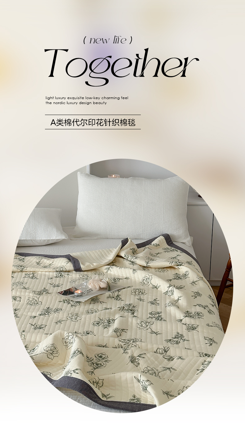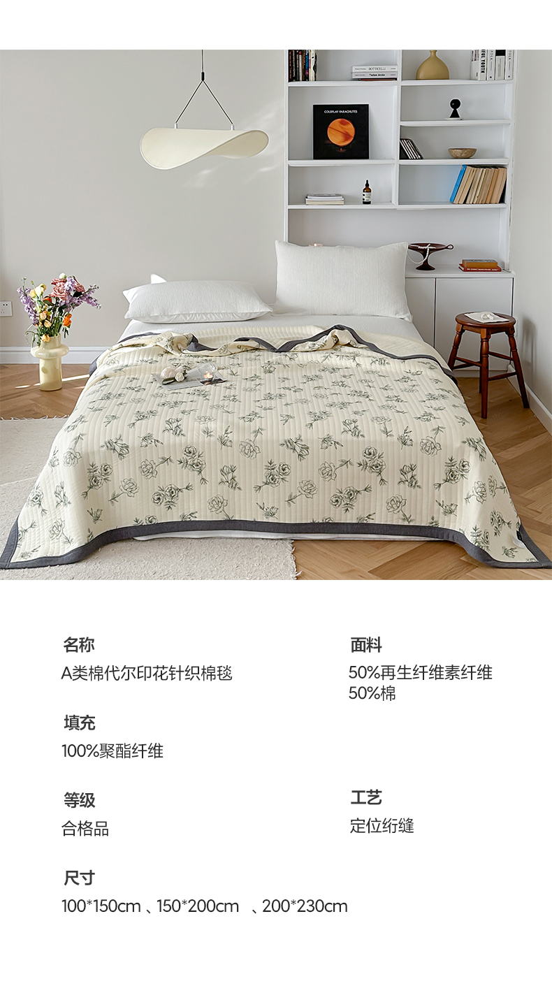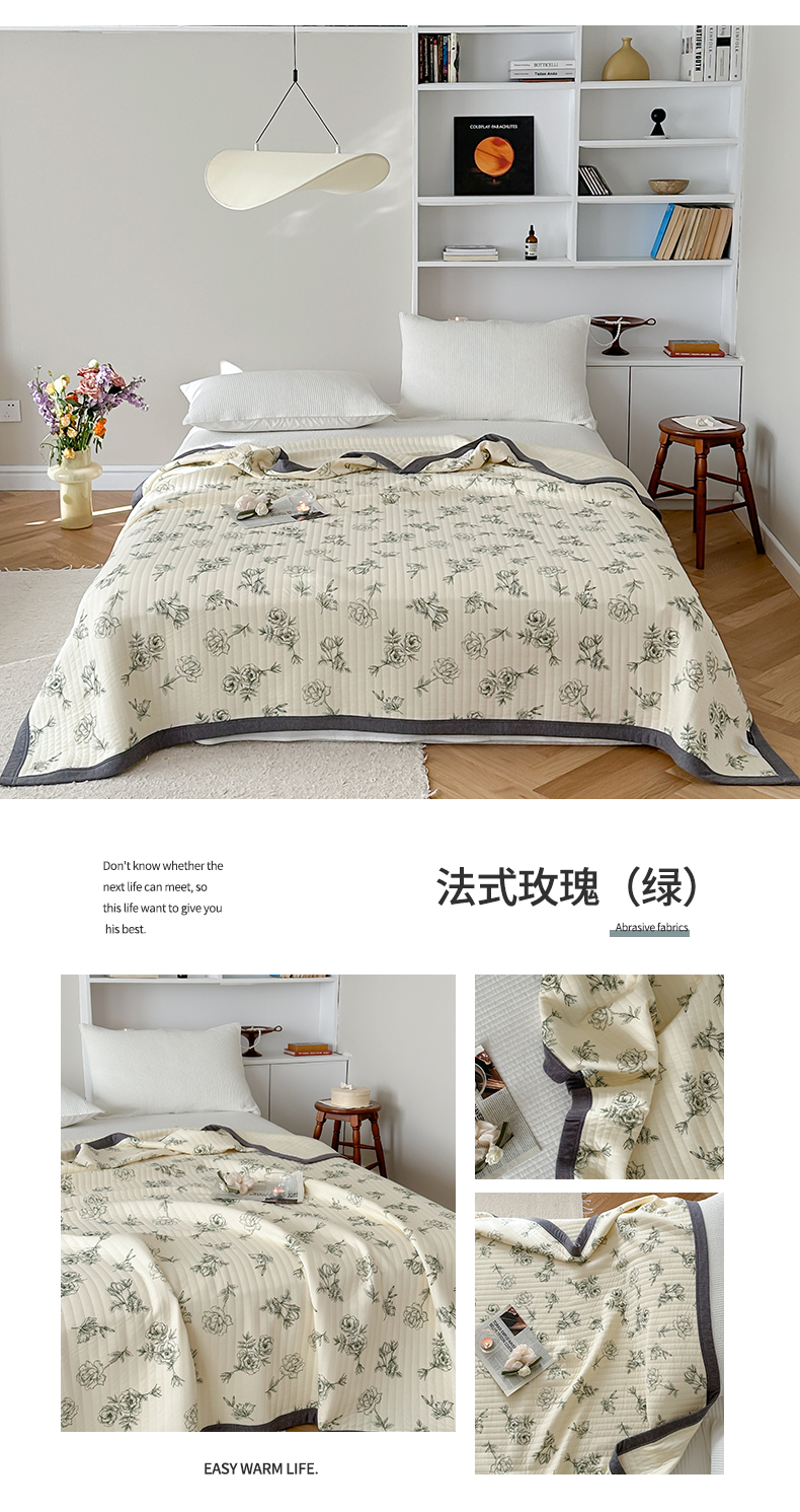 商品名称:吾秀 2023新款A类棉代尔针织棉毯 法式玫瑰(绿)