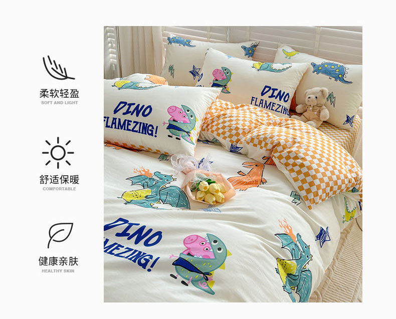 梦家居2023新款小猪佩奇系列全棉单被套 恐龙乔治