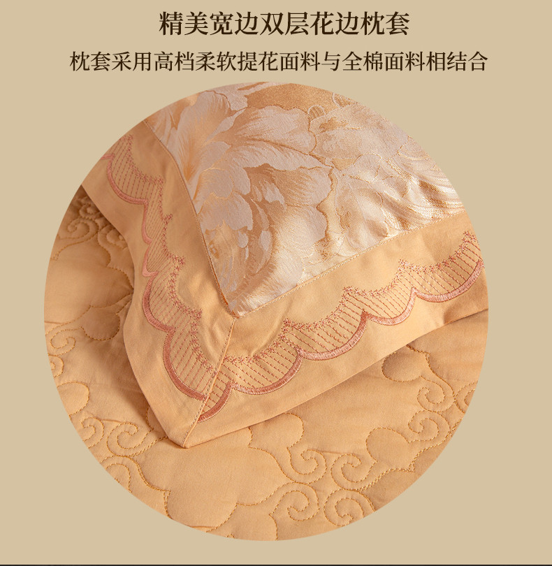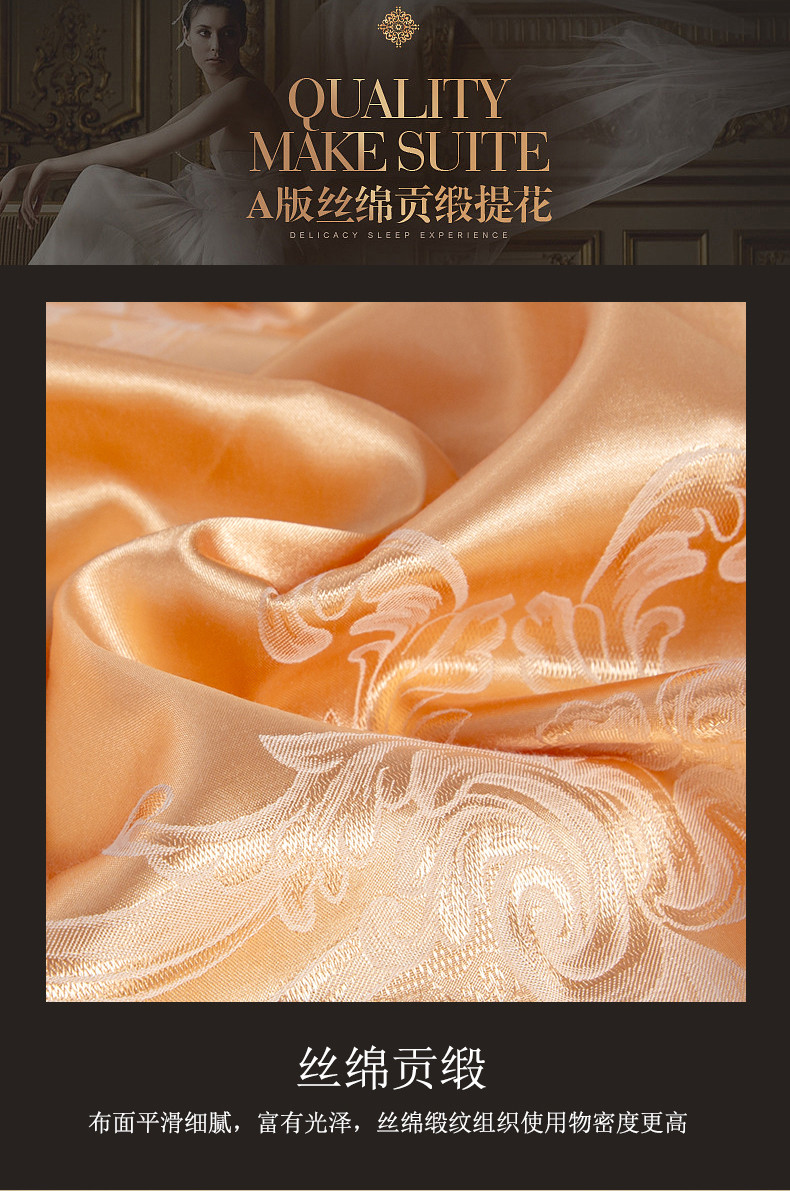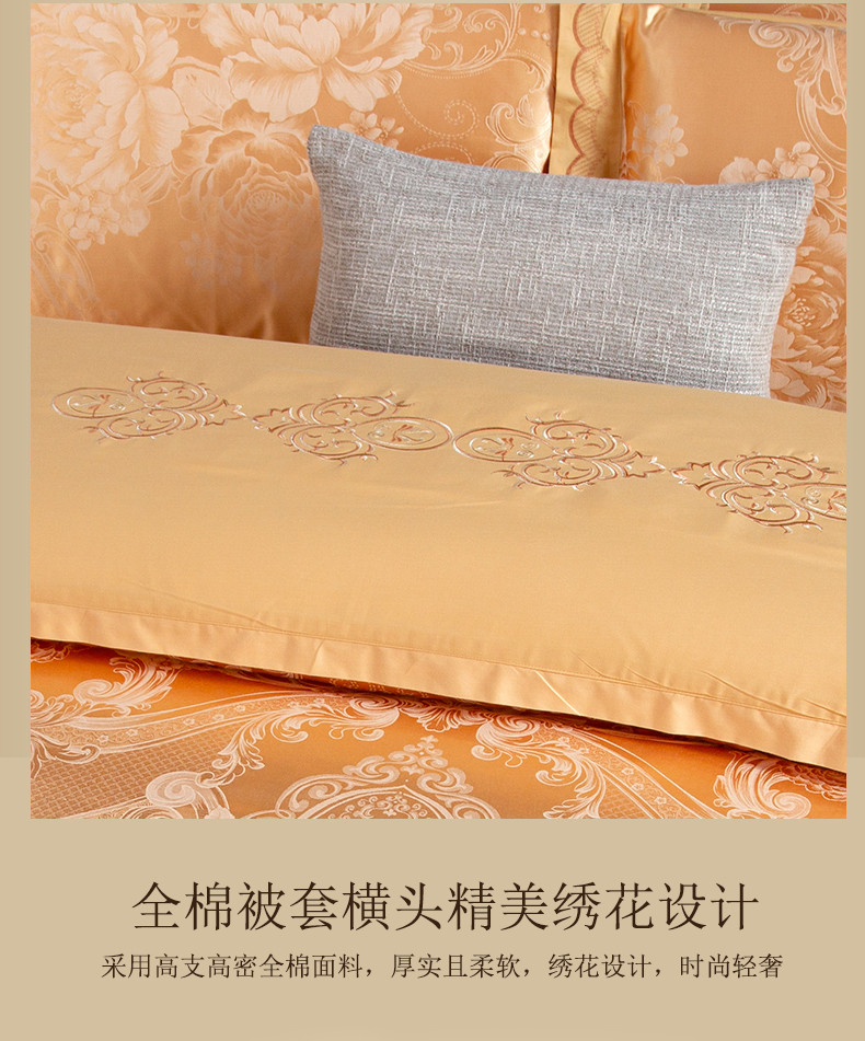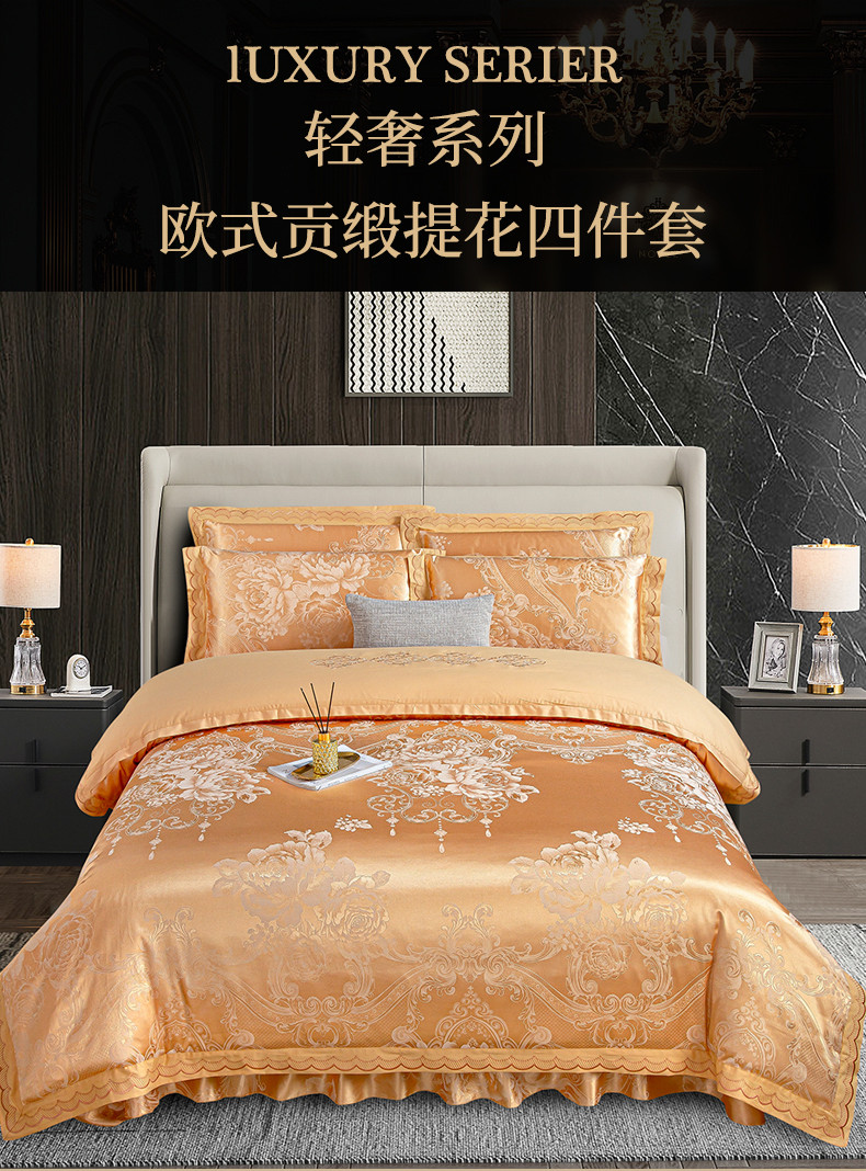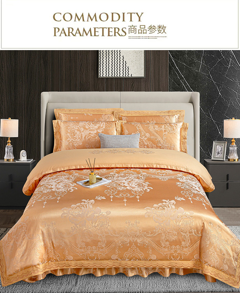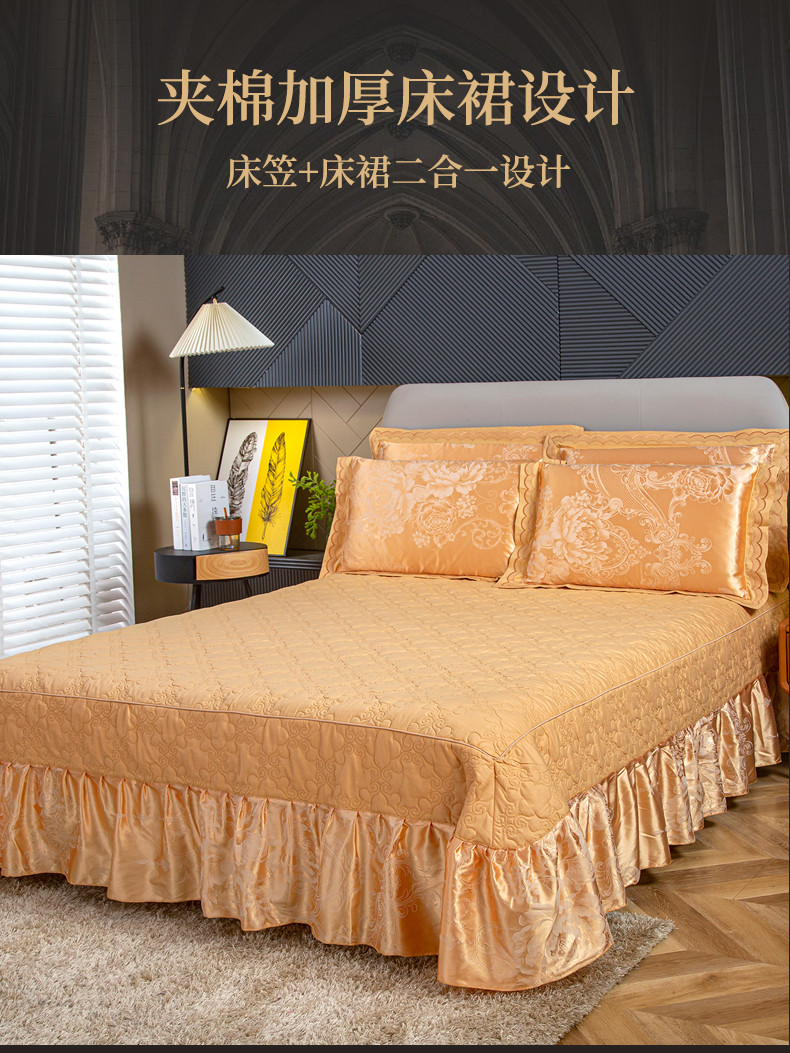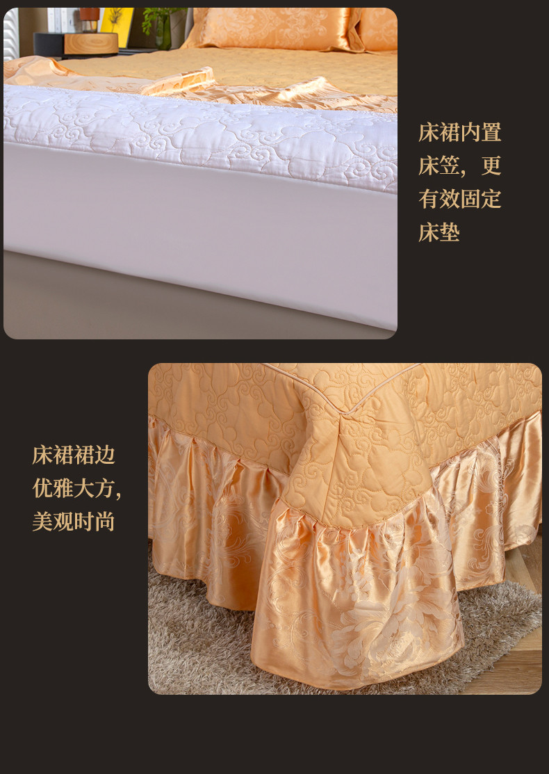 商品名称:福丽莱家纺 2023新款贡缎提花床裙四件套(夹棉)锦绣花开-金色