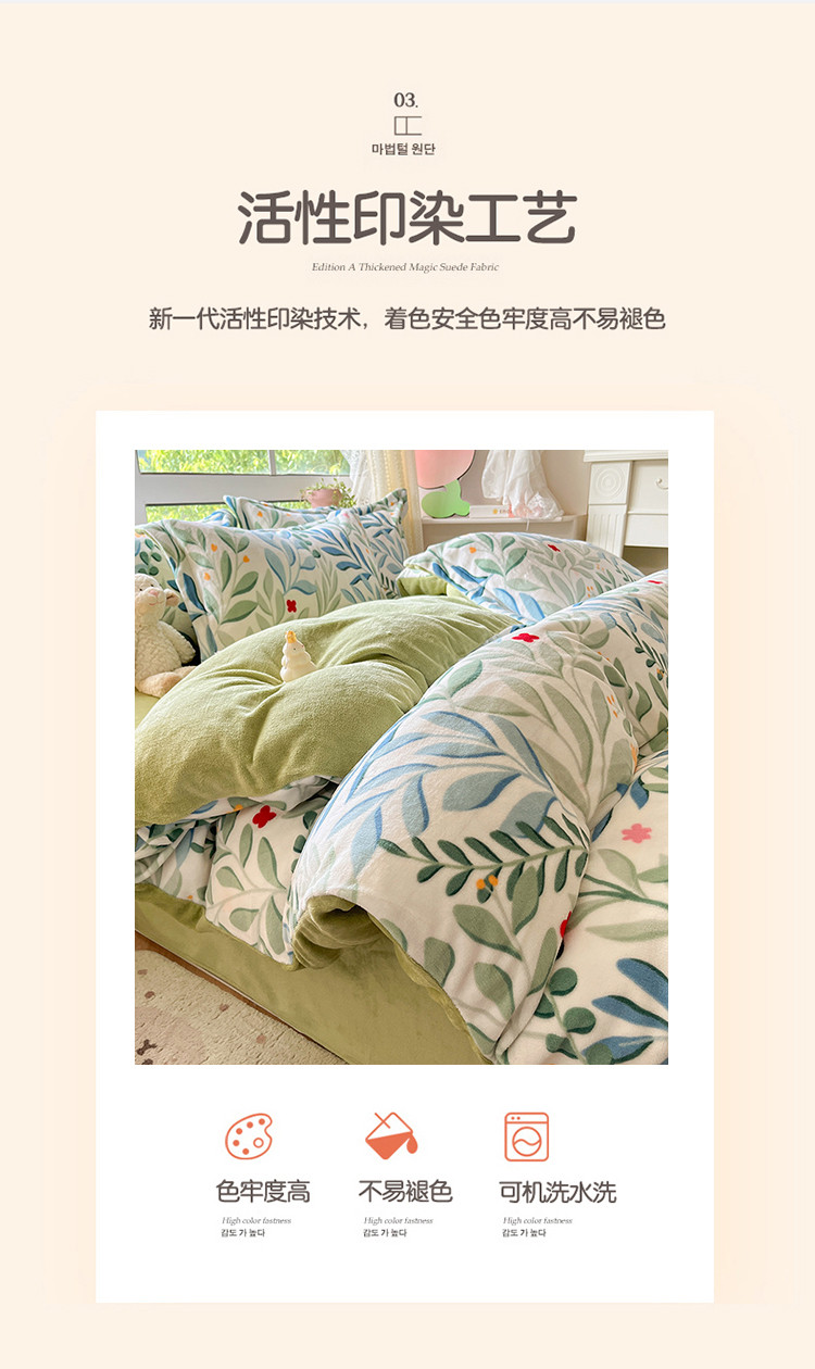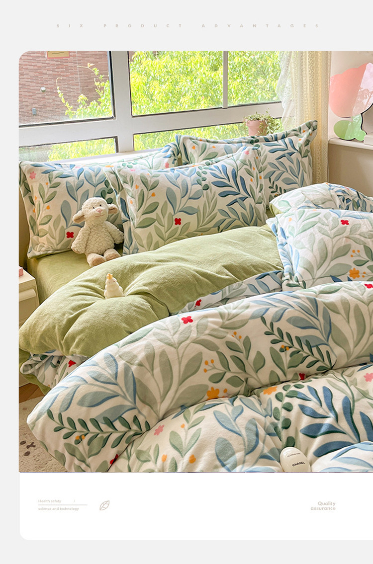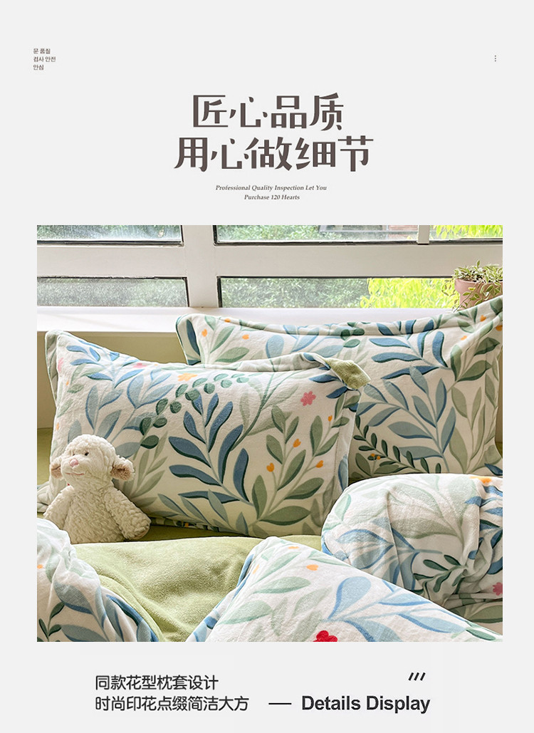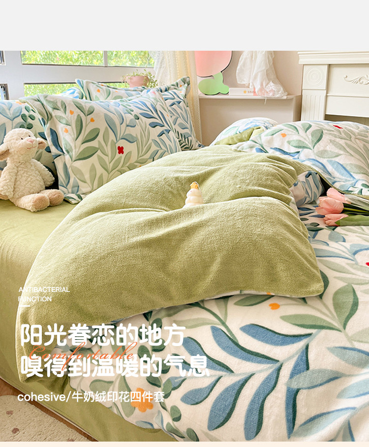 沐棉 2023新款牛奶绒印花+小清新四件套 繁花绿叶