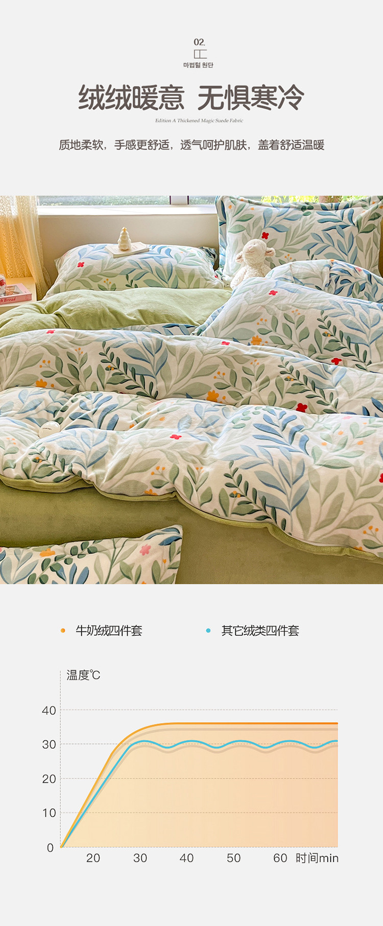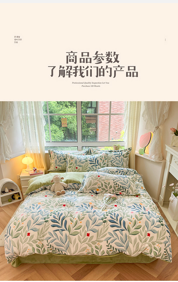 商品名称:沐棉 2023新款牛奶绒印花+小清新四件套 繁花绿叶