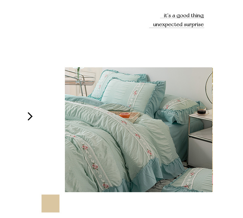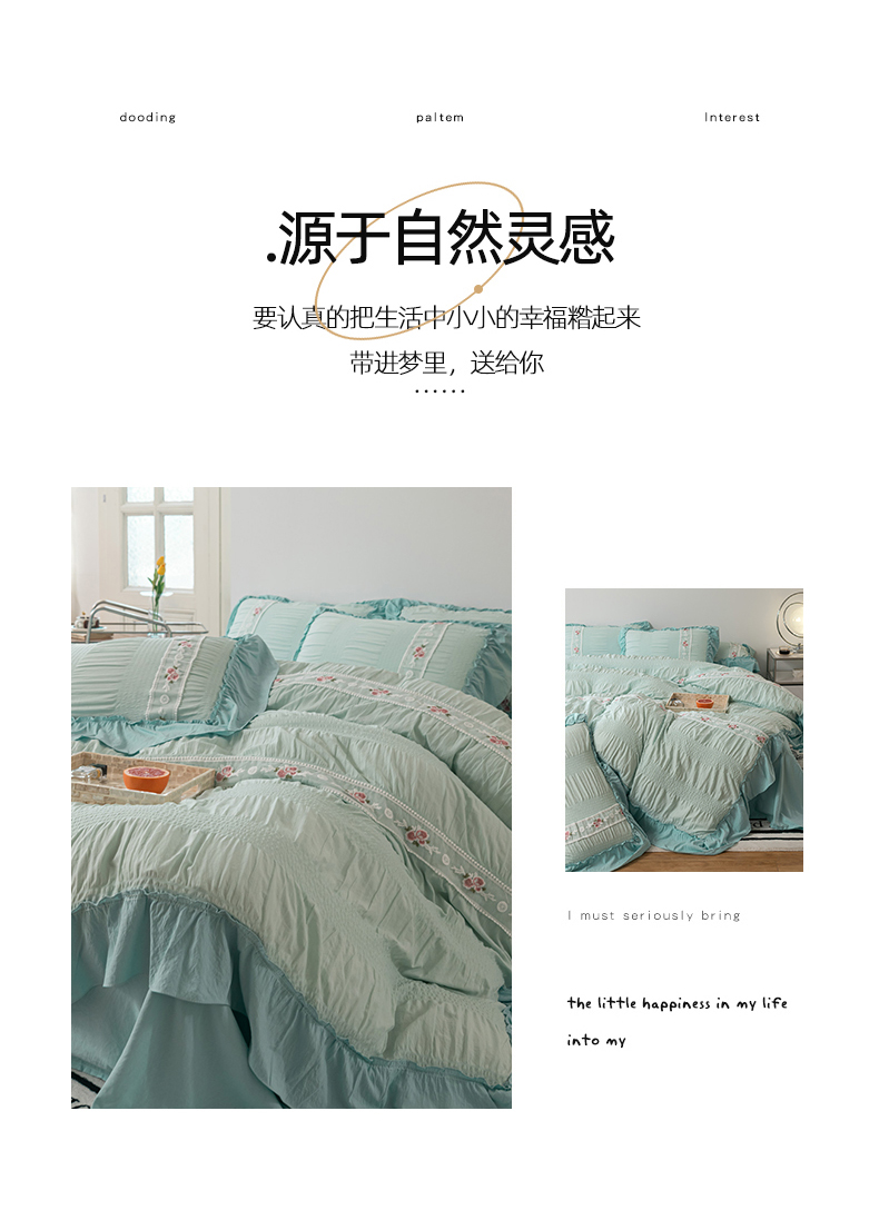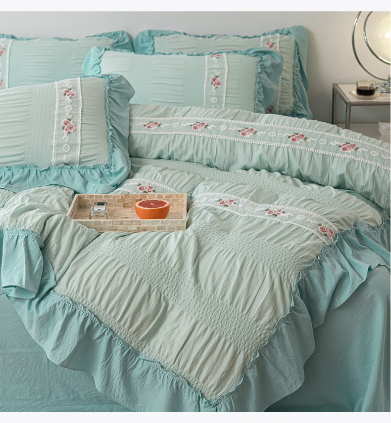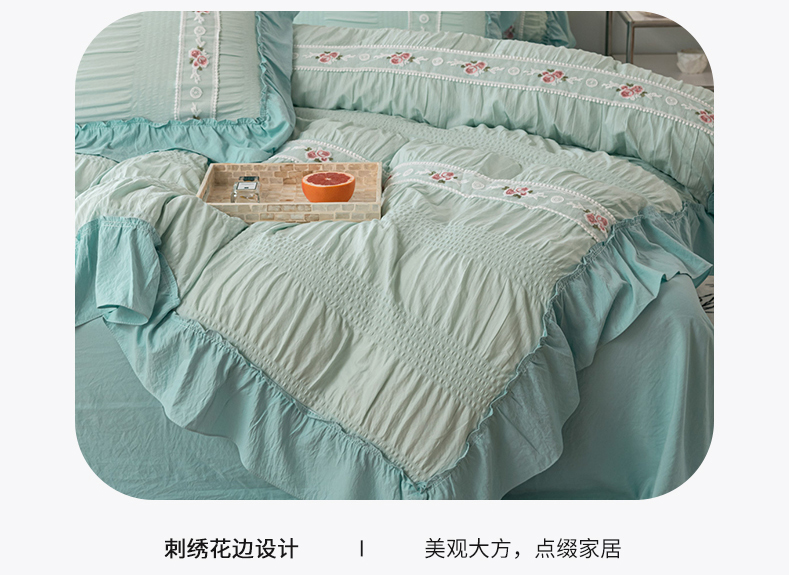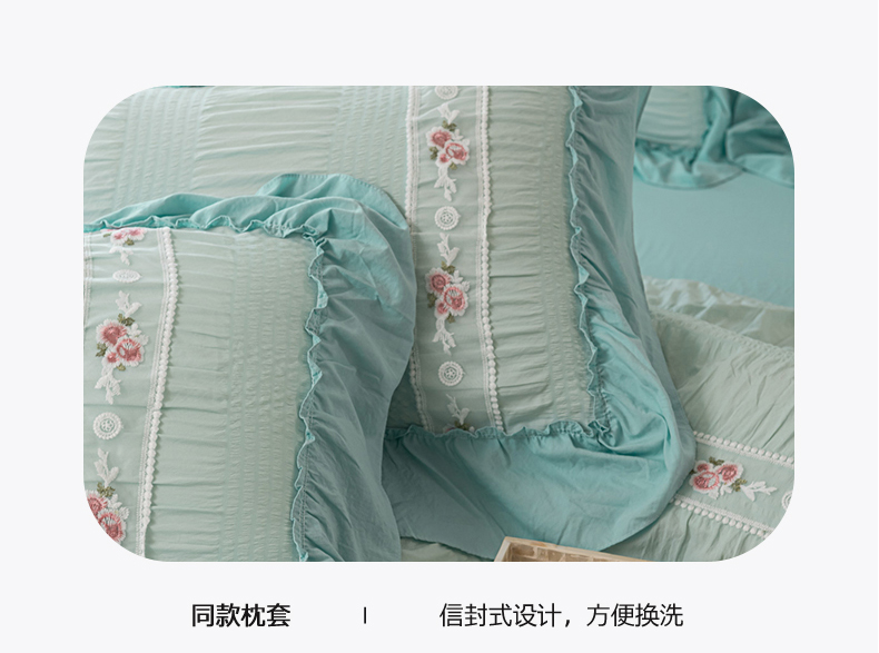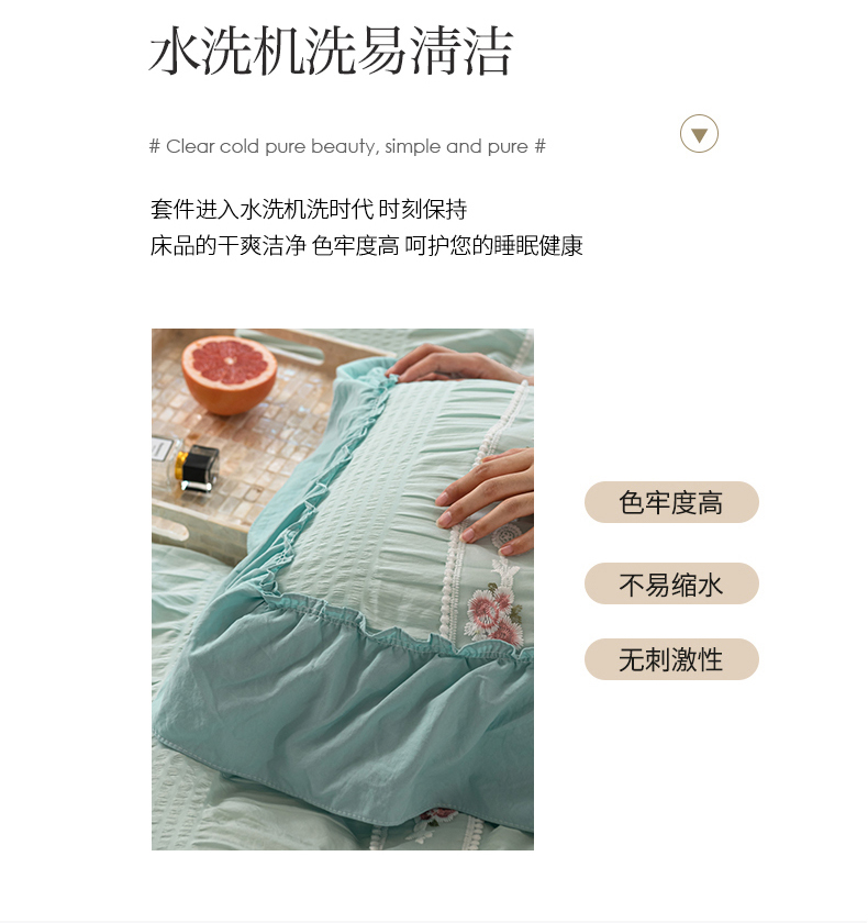 当前位置: 91家纺网 > 商品网购 > 床品套件 > 四件套 > 水洗棉四件套 > 你好美丽 2025新款泡泡纱刺绣花边四件套 泡泡纱-浅绿色