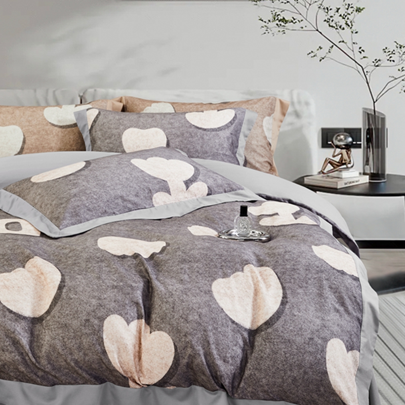 2023新品天丝棉磨毛暖阳绒四件套 郁金香 灰
