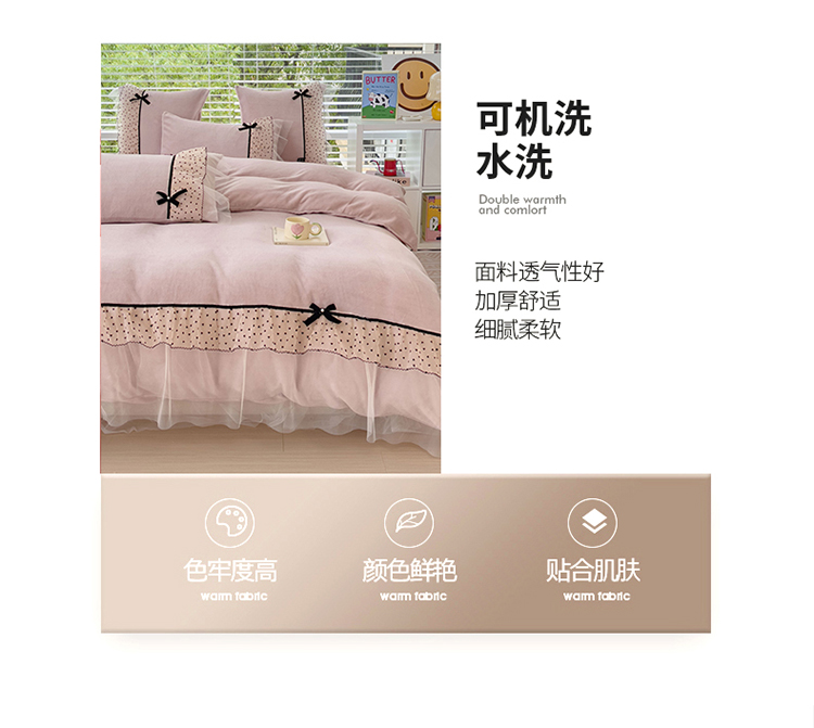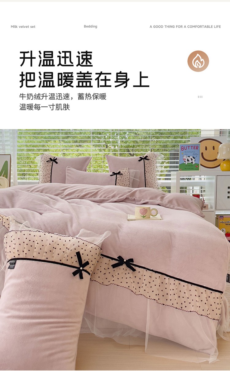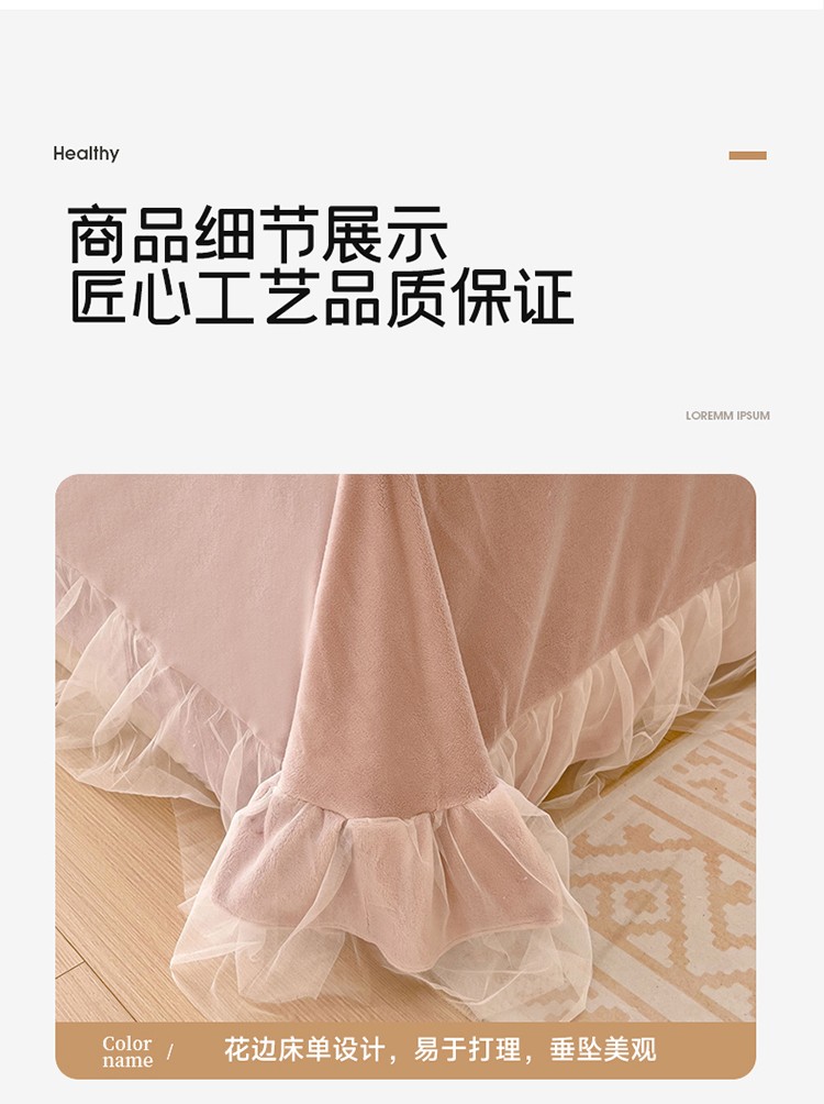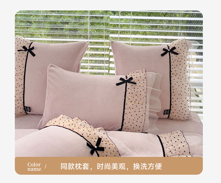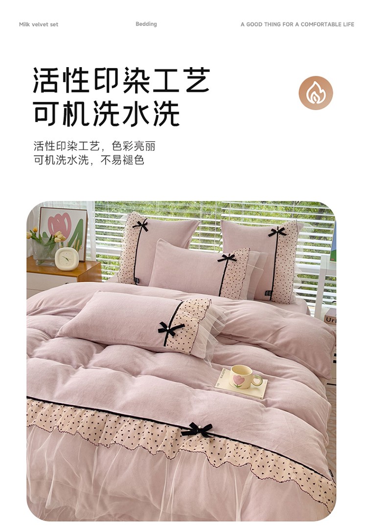 商品名称:2025新款牛奶绒拼纱四件套-洛可可 粉紫