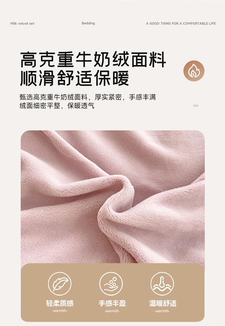 (总)品家居 2025新款5D雕花牛奶绒绣花大拼角四件套-岁月静好,粉色,蓝色,秋黄