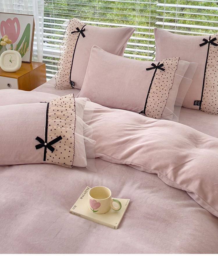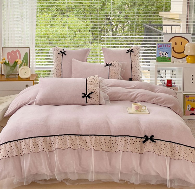 2025新款牛奶绒拼纱四件套-洛可可 粉紫