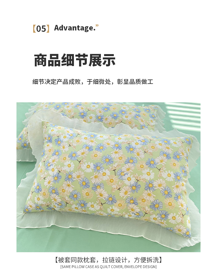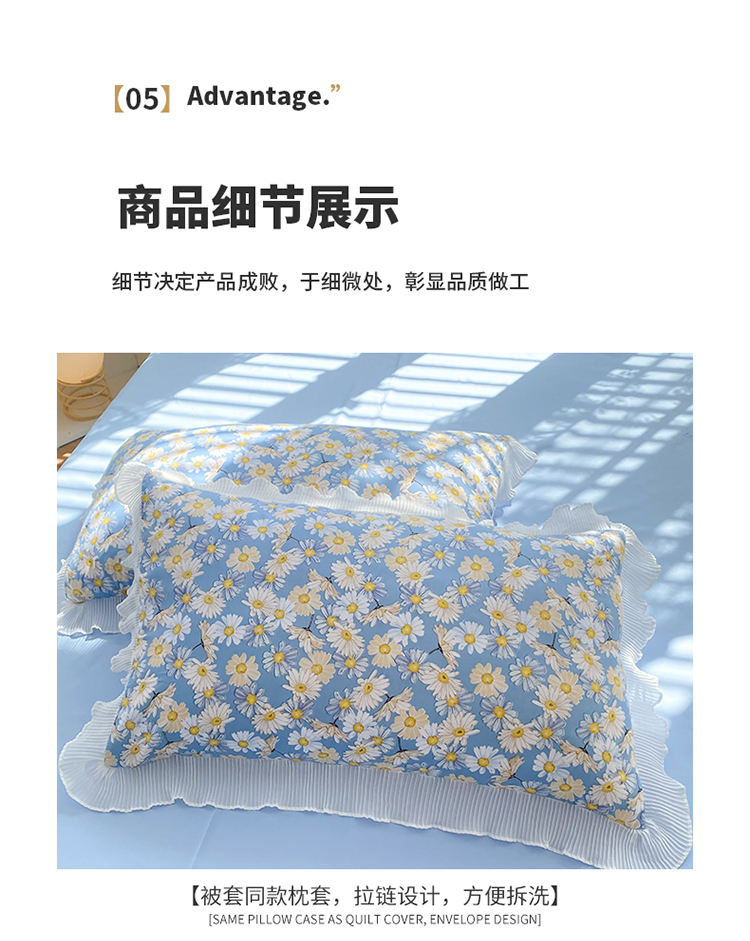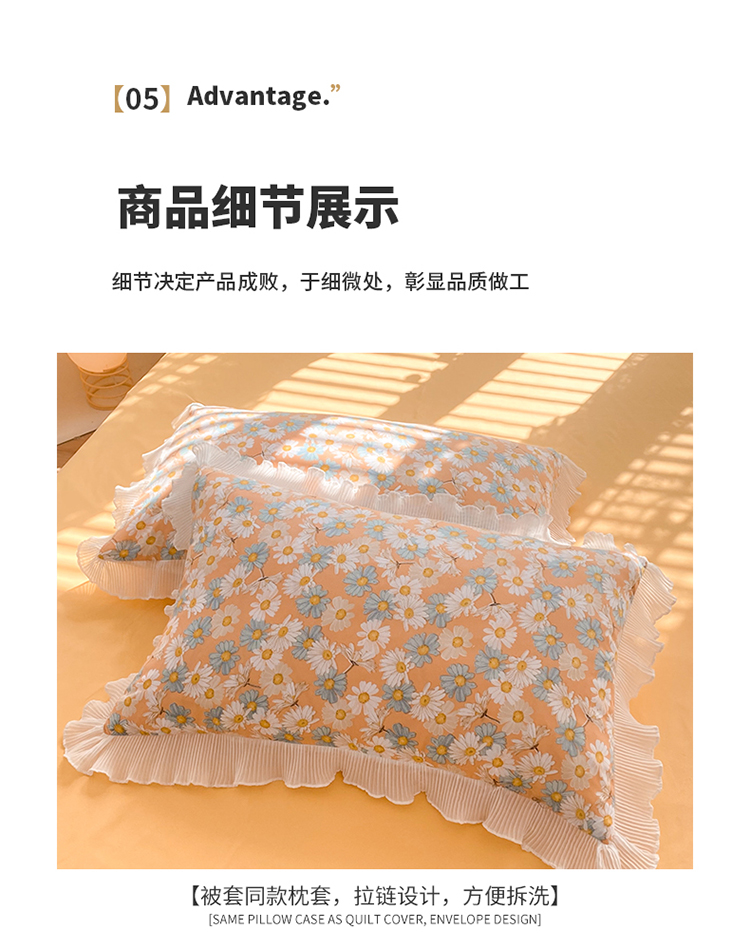 商品名称:(总)大米家居 2024新款小雏菊印花海岛棉水洗棉磨毛花边枕套
