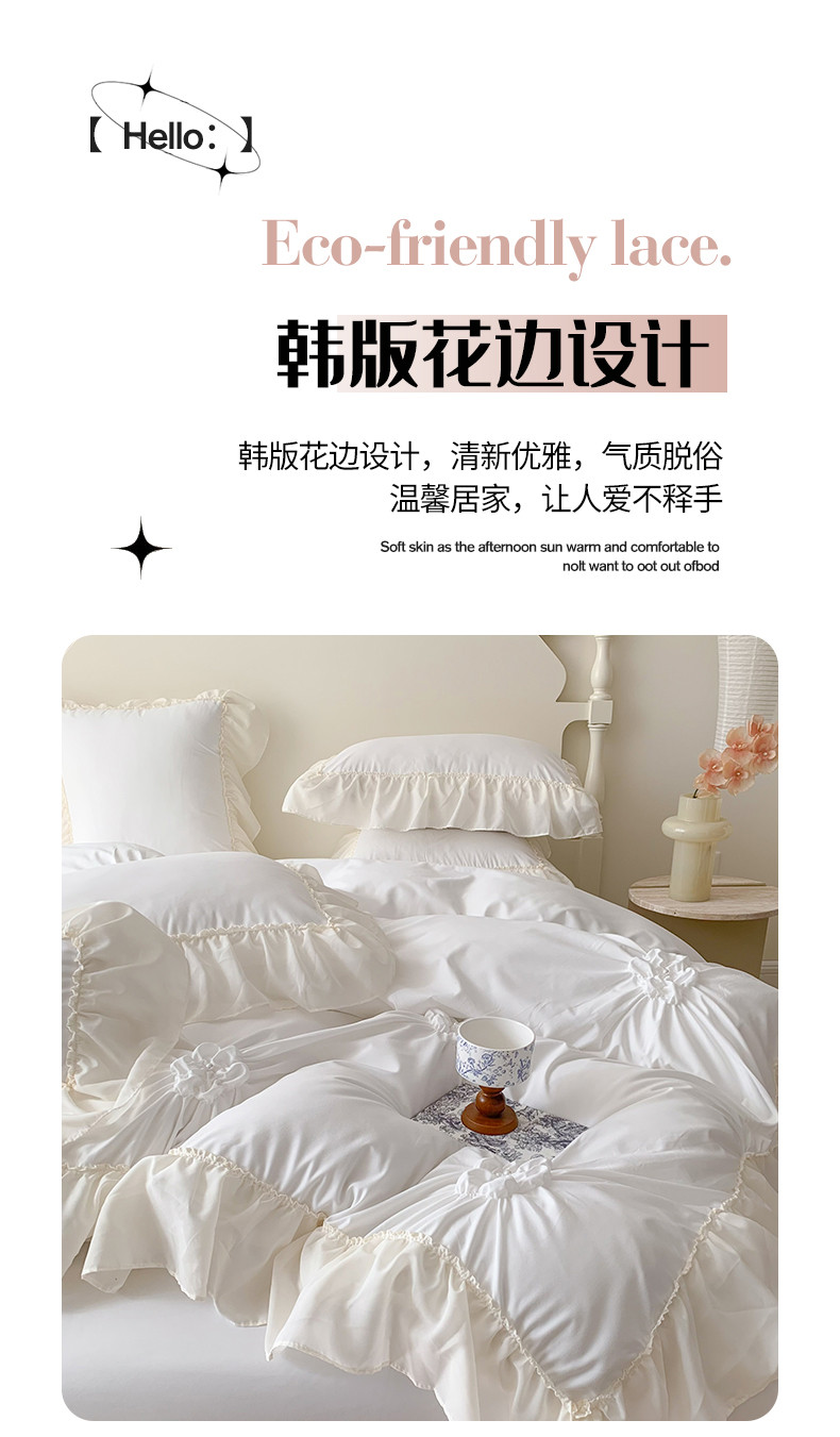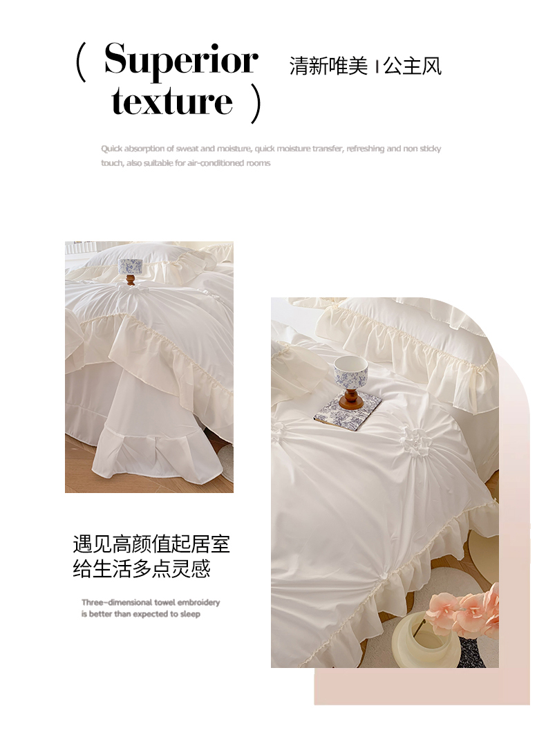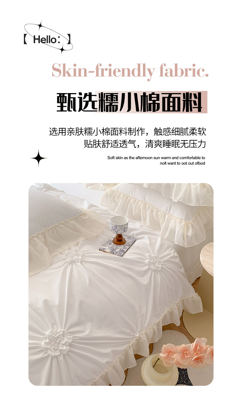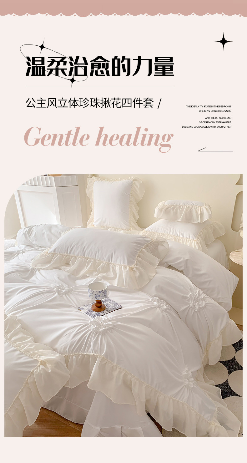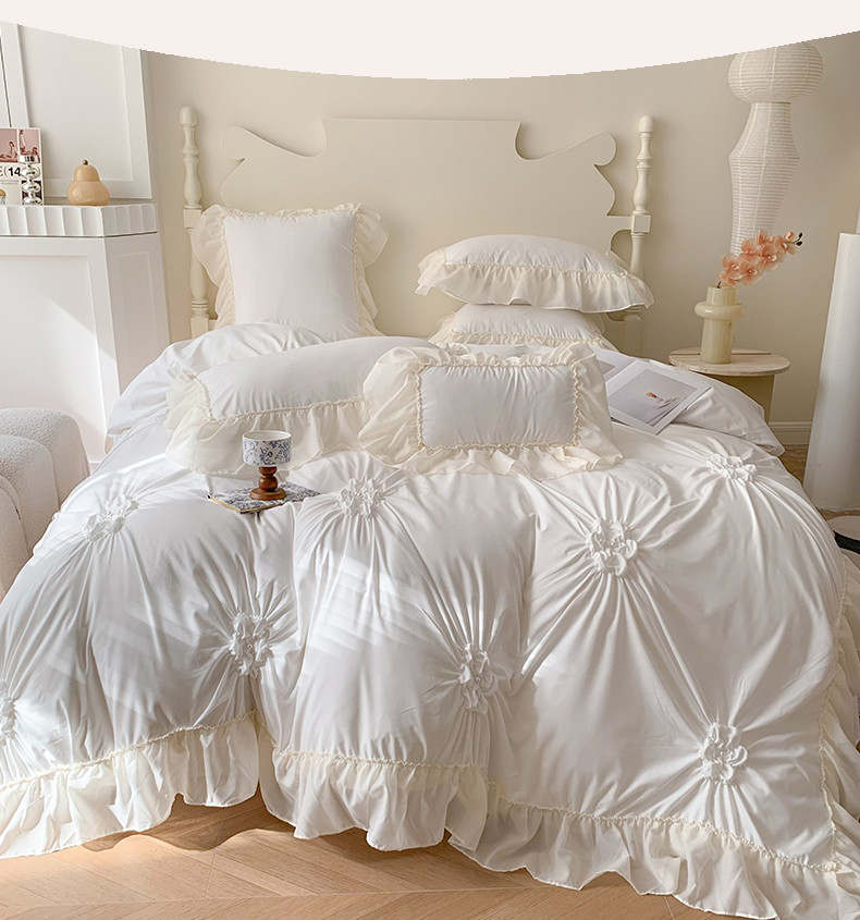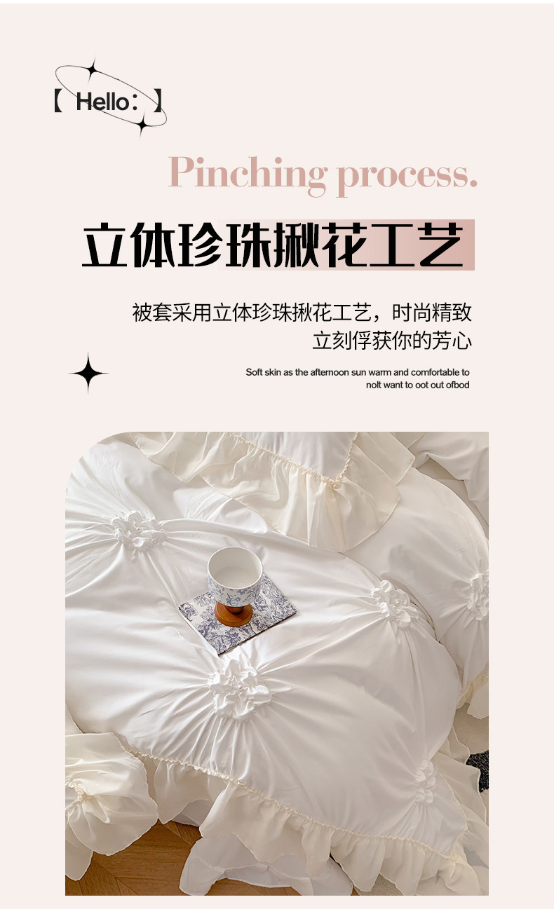 吾欢心 2025新款珍妮系列珍珠揪花四件套 珍妮白