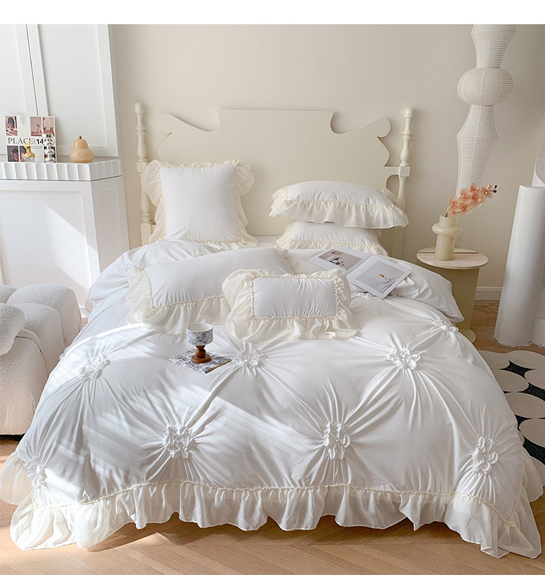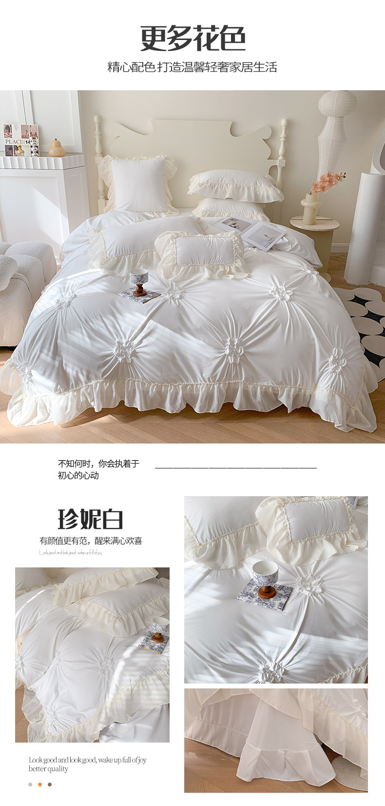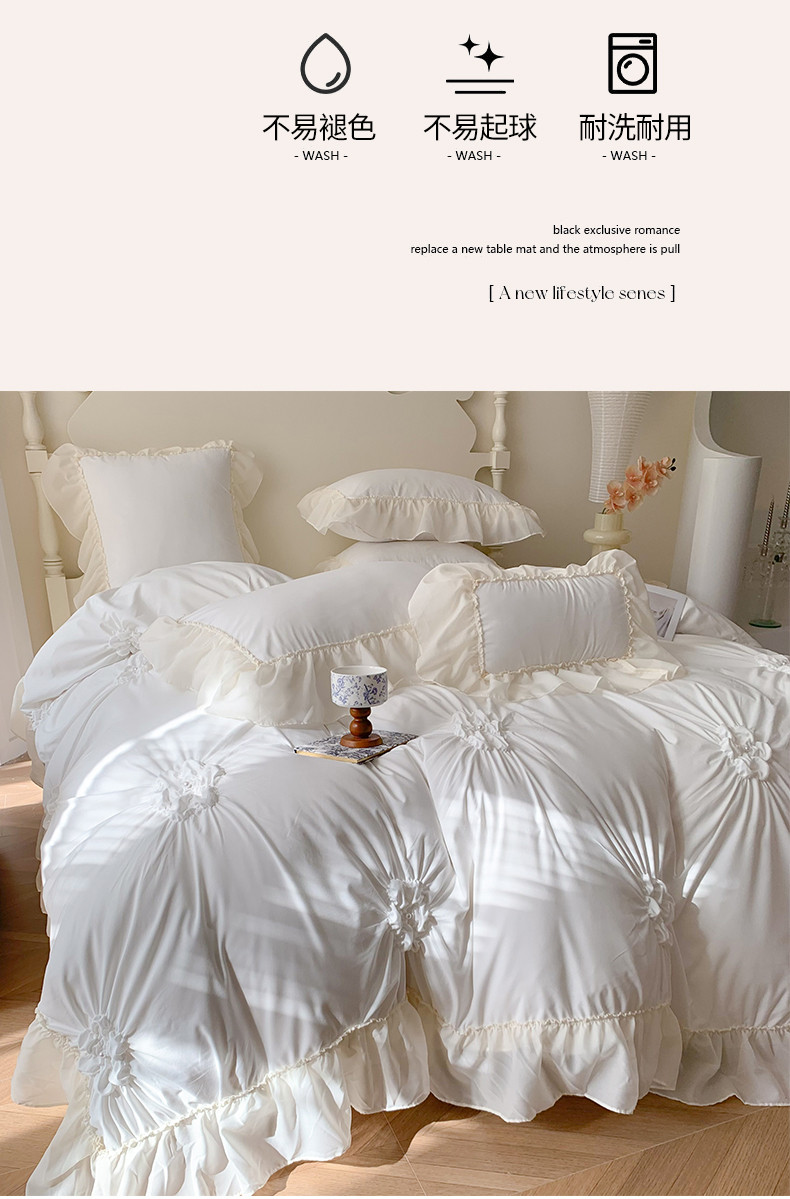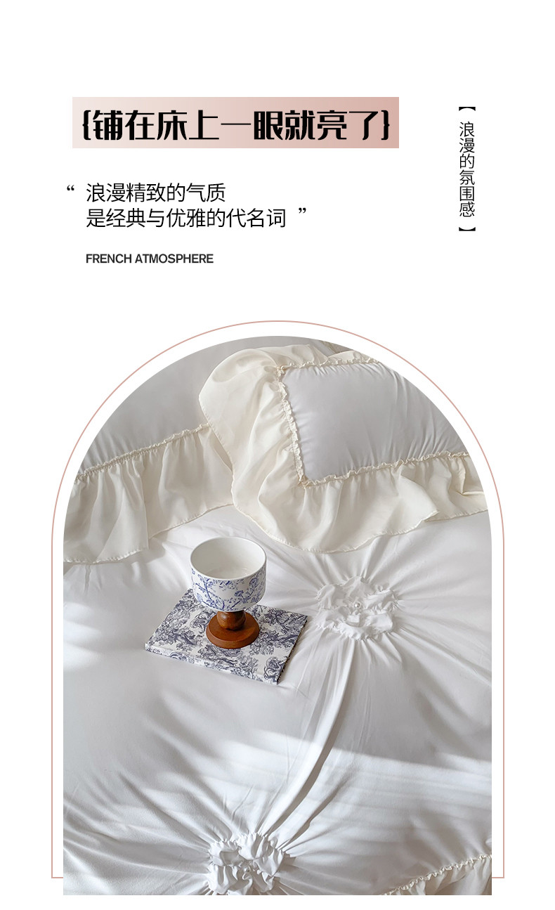 商品名称:吾欢心 2025新款珍妮系列珍珠揪花四件套 珍妮白
