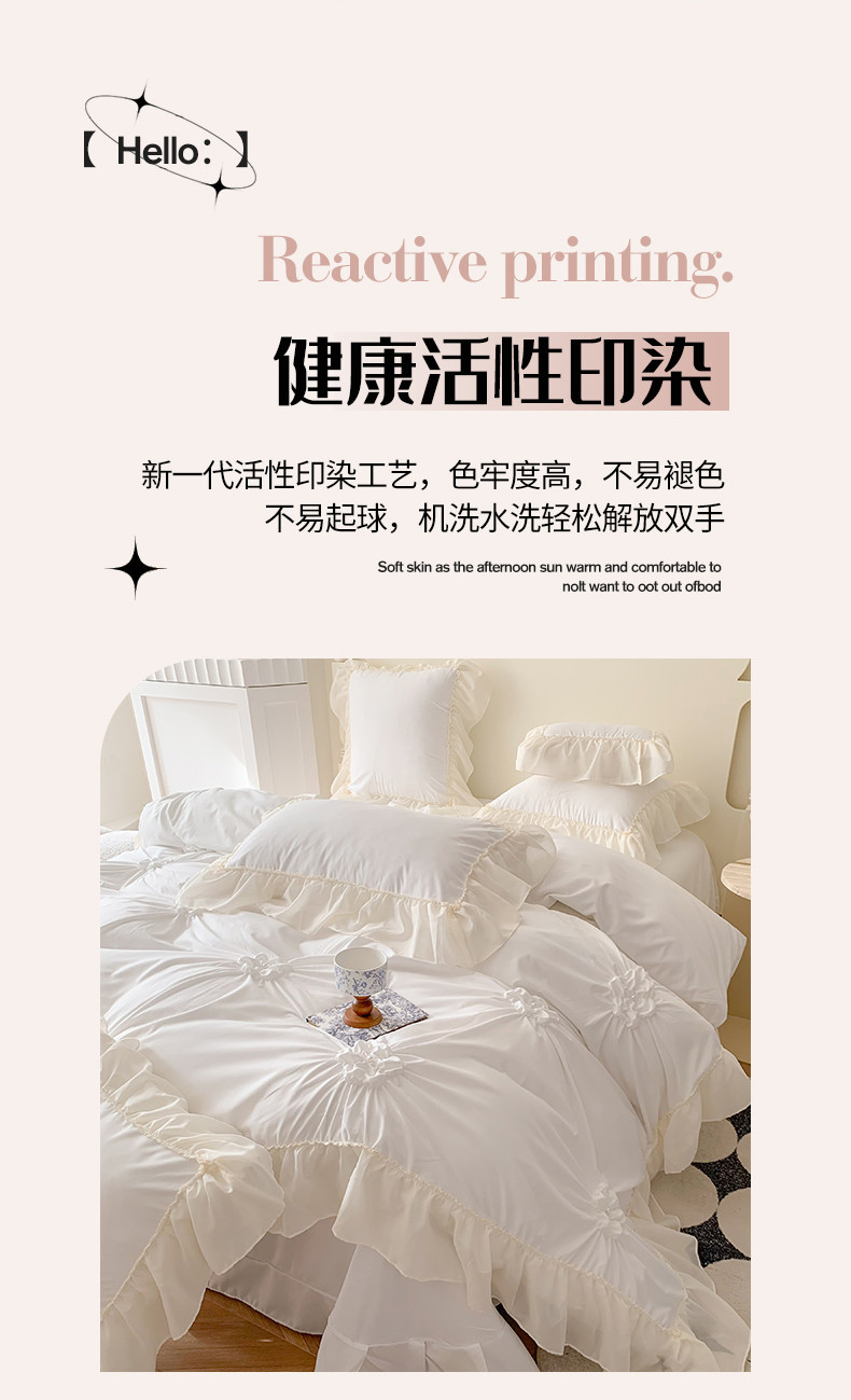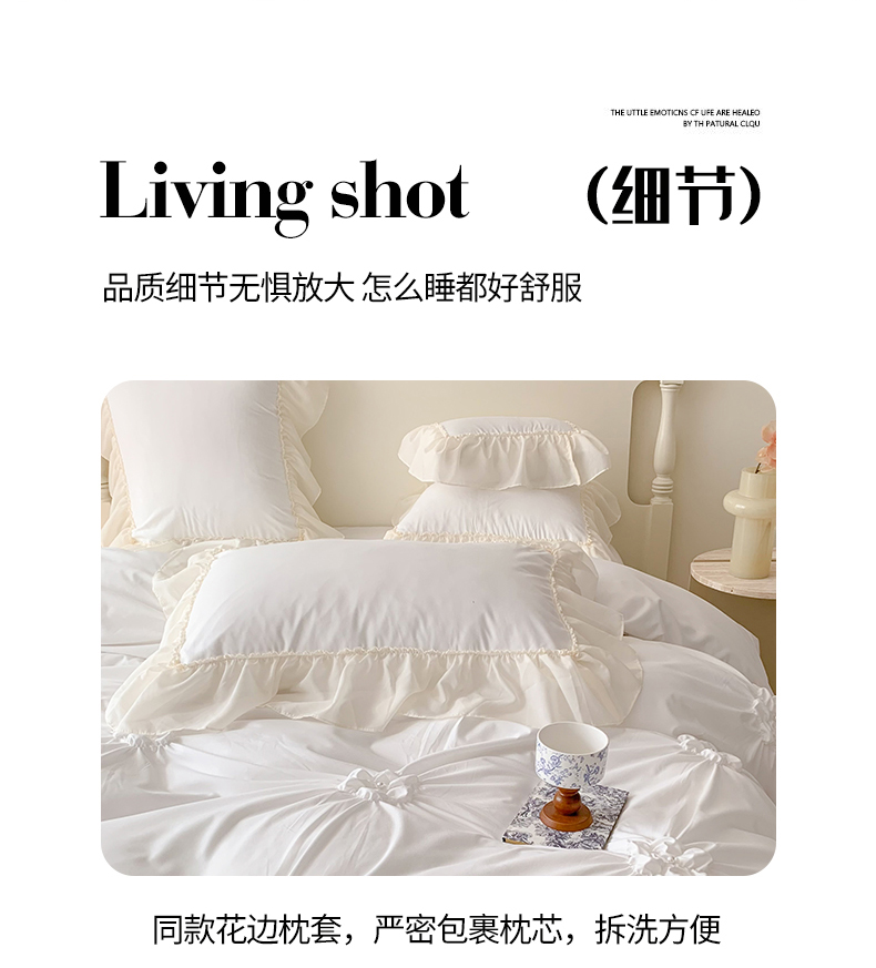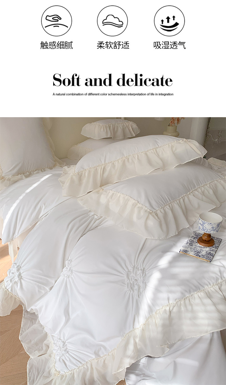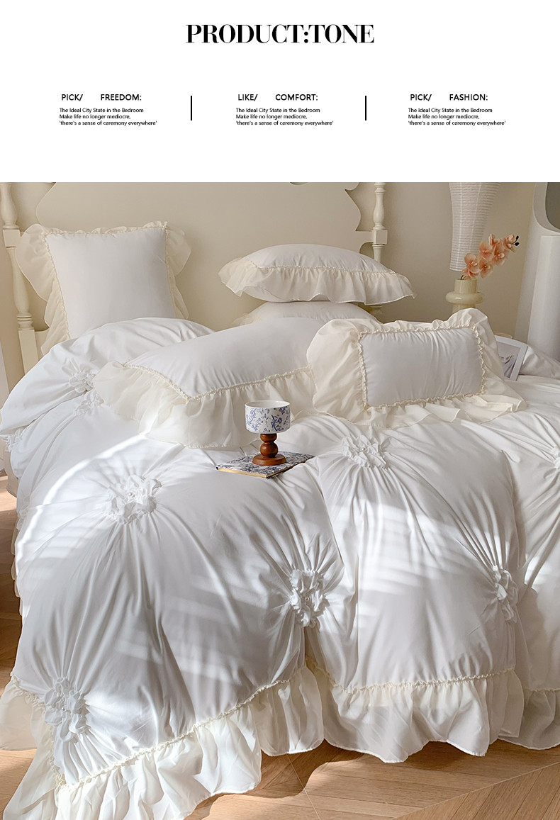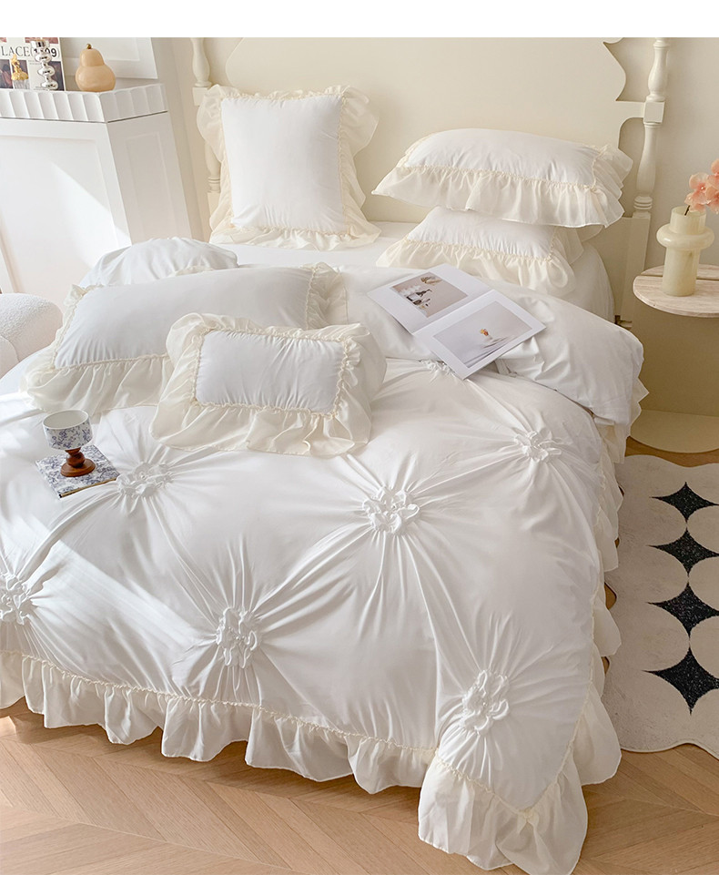 商品名称:吾欢心 2025新款珍妮系列珍珠揪花四件套 珍妮白
