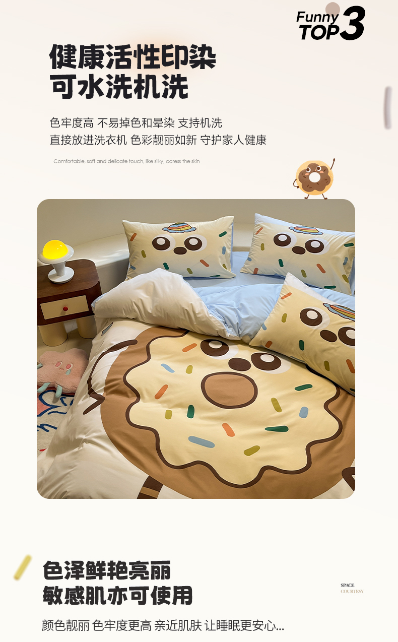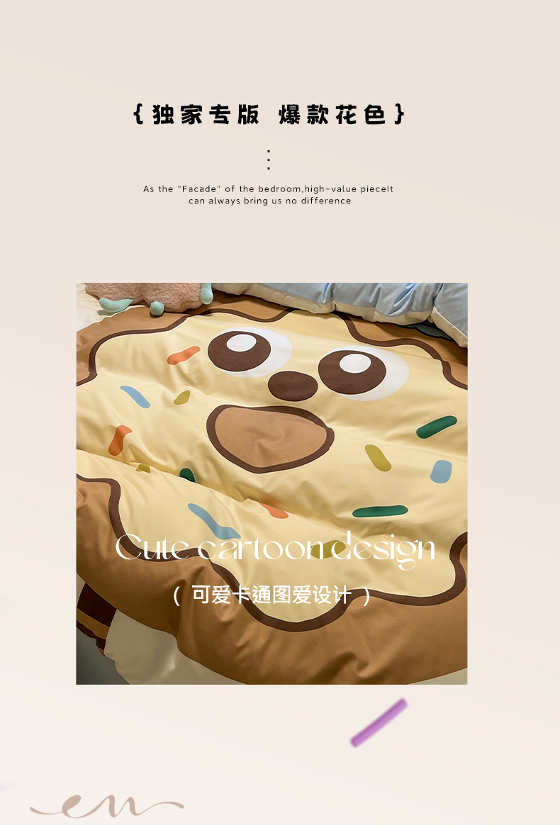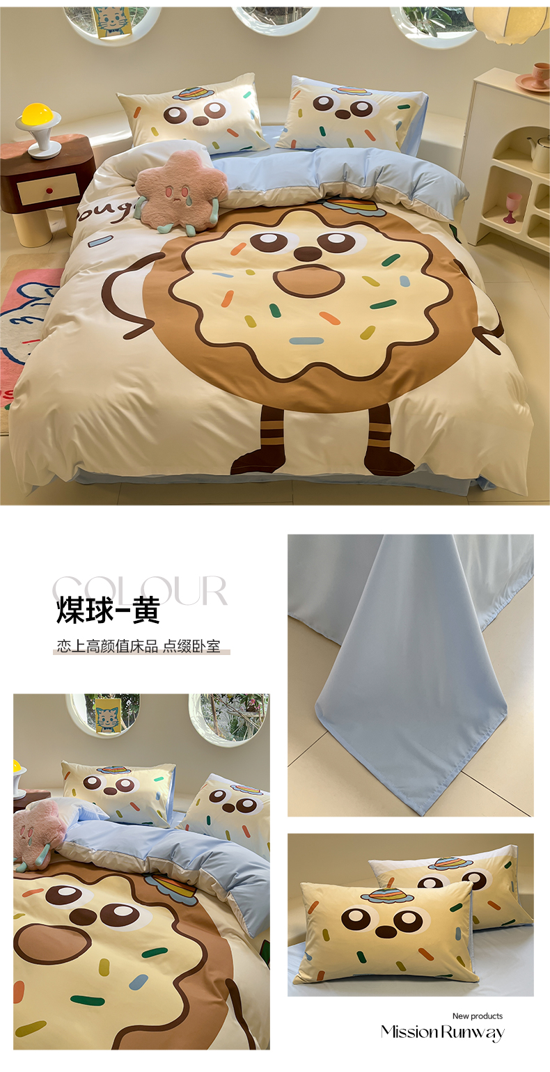 商品名称:亨通家纺 2025新款糯糯棉印花四件套 煤球黄