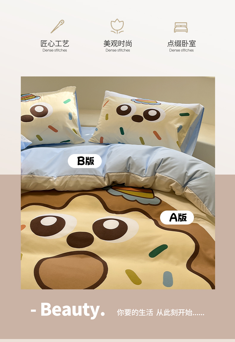 亨通家纺 2025新款糯糯棉印花四件套 煤球黄