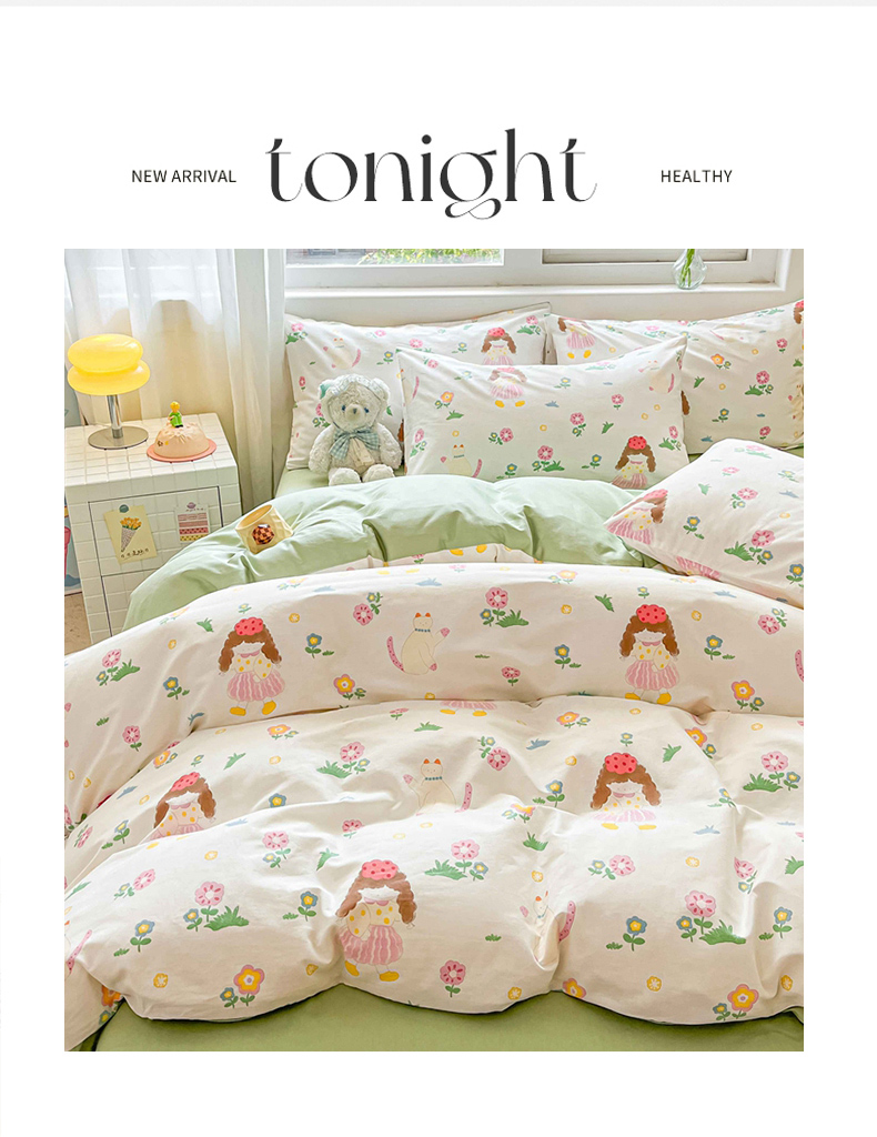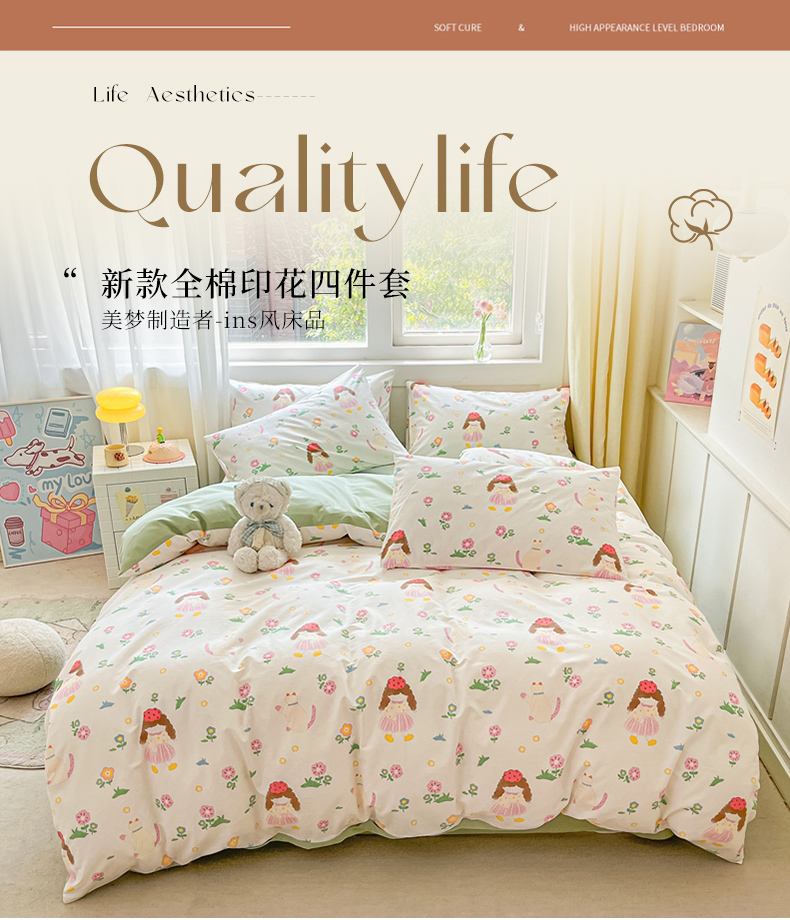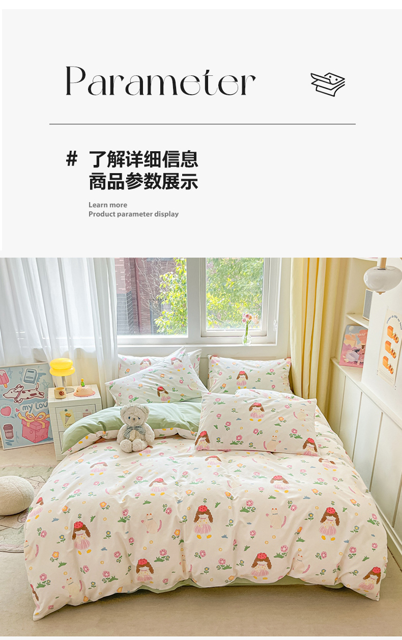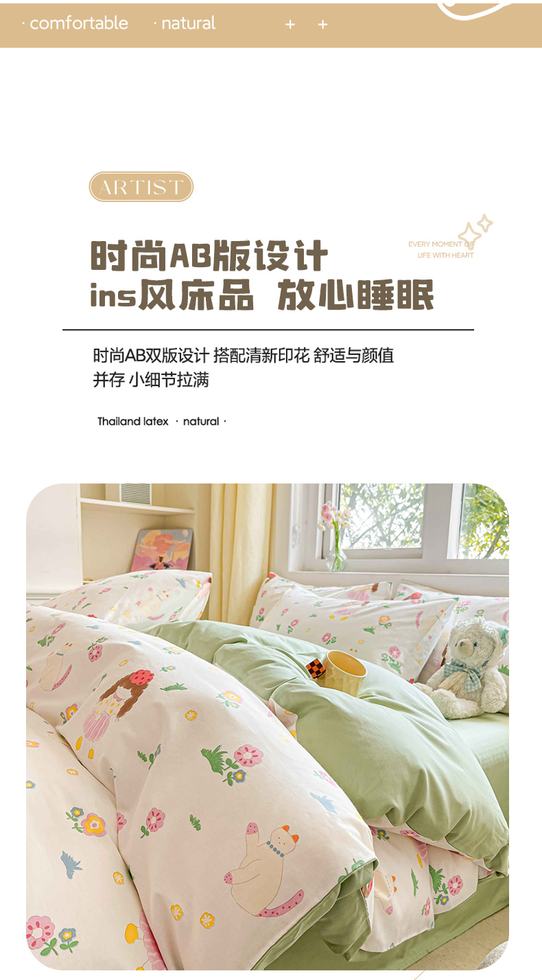 (总)佰亿莱 2024直播新款小清新印花全棉加厚磨毛四件套,爱心格,波浪兔,花萌,花园兔,咖啡熊,萌萌狗,时尚花季,时尚恐龙,田园花,郁金香