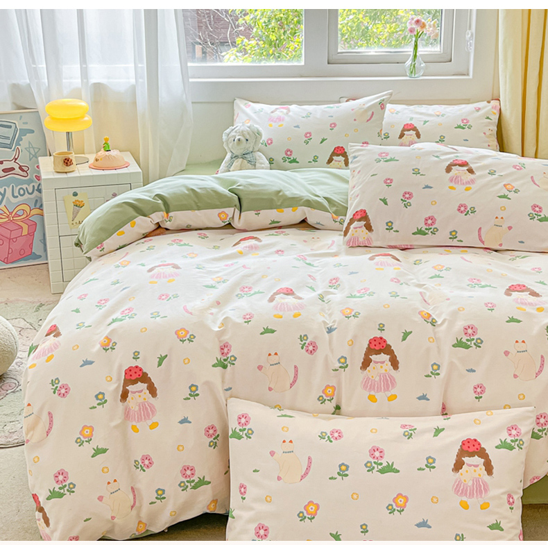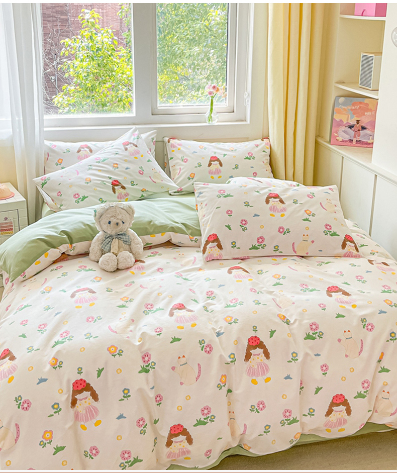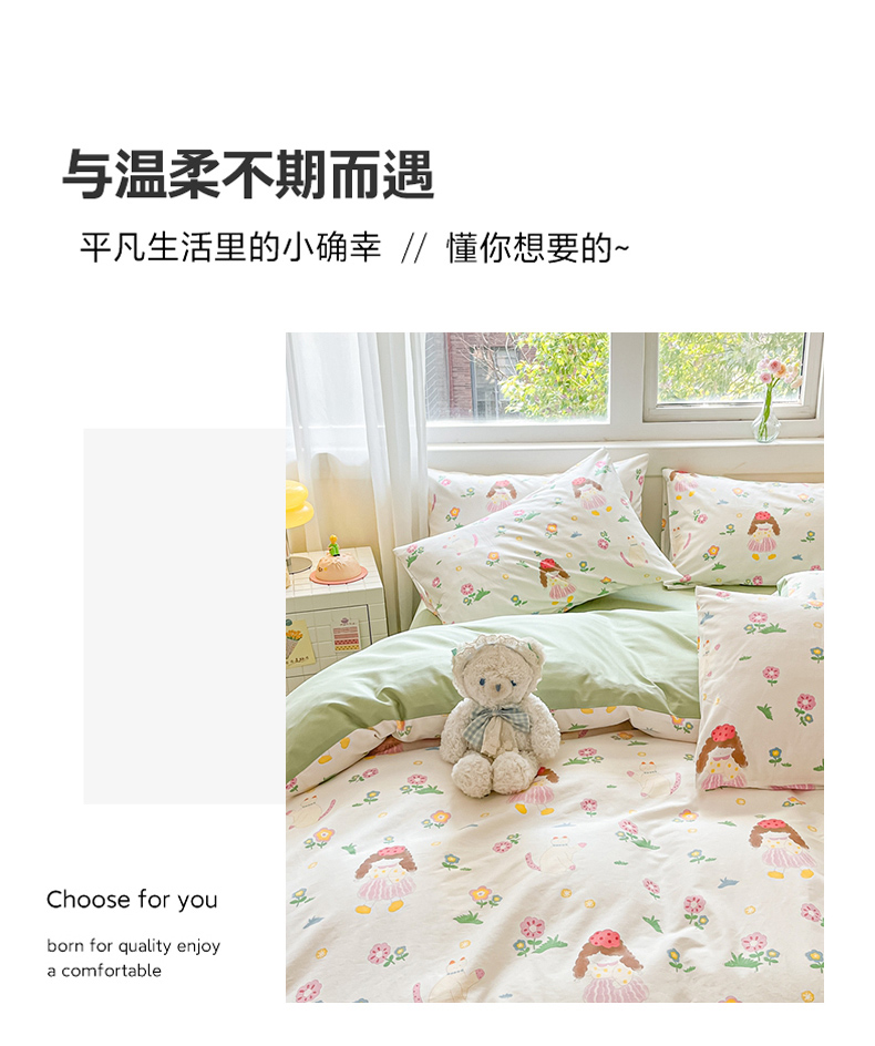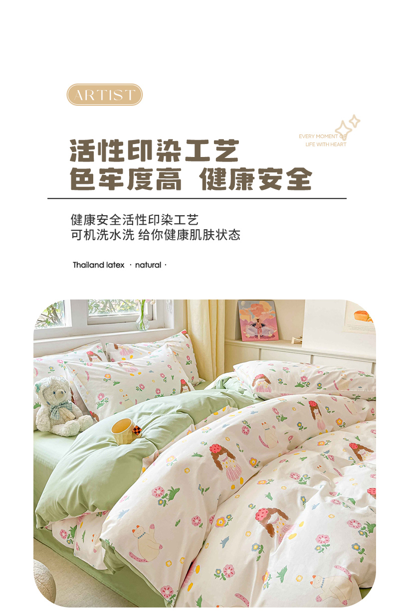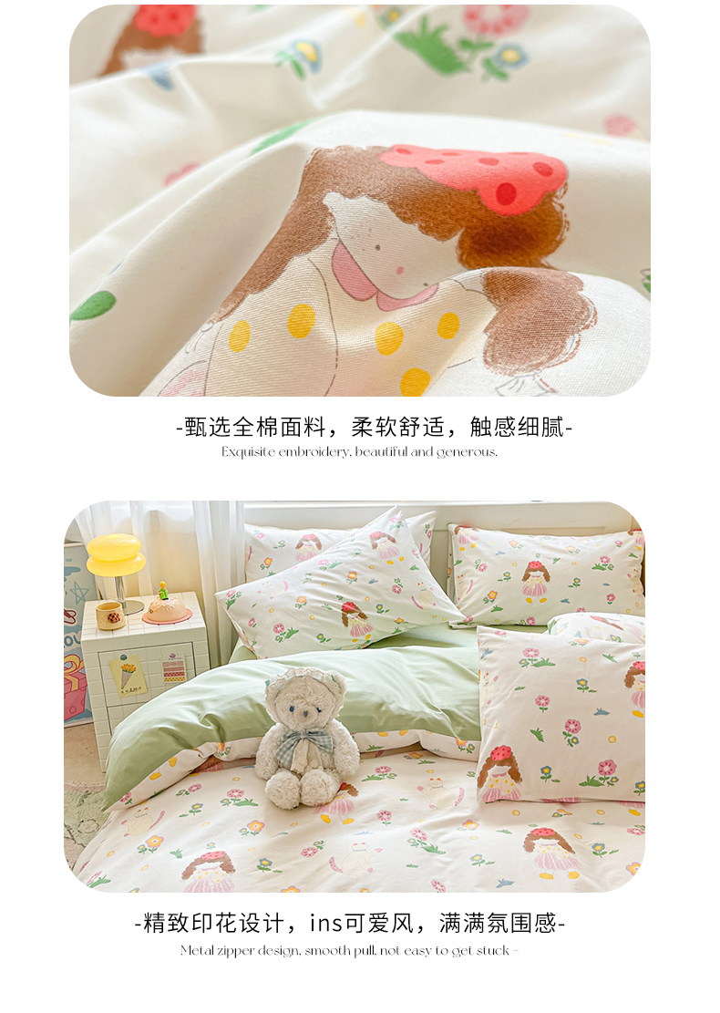 (总)佰亿莱 2024直播新款小清新印花全棉加厚磨毛四件套,爱心格,波浪兔,花萌,花园兔,咖啡熊,萌萌狗,时尚花季,时尚恐龙,田园花,郁金香