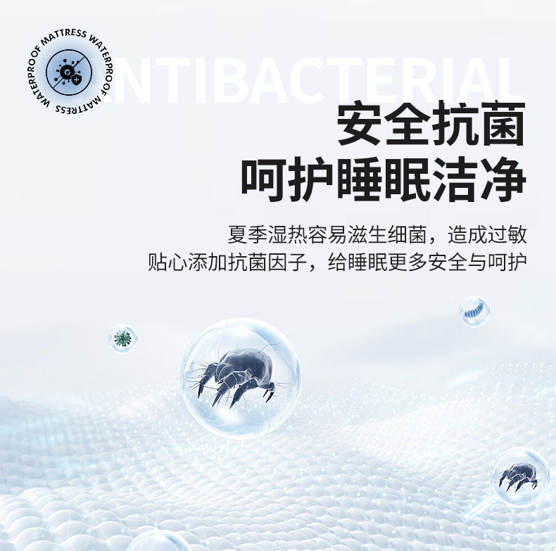 (总)好眠好梦家纺 2025新款全棉50S抗菌防螨夹棉防水床笠-无限之光系列,白色,粉色,卡其,深灰,天蓝,烟灰