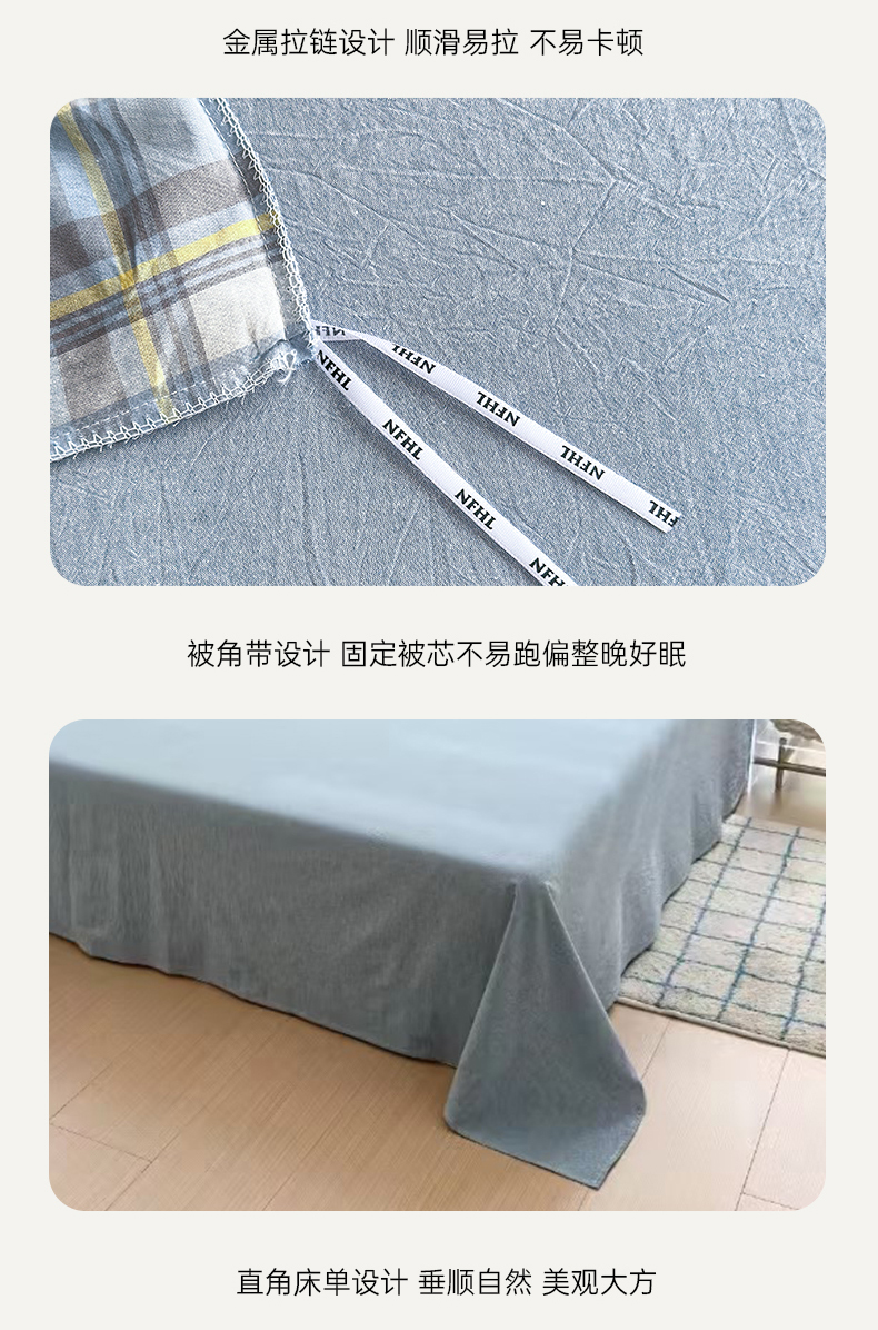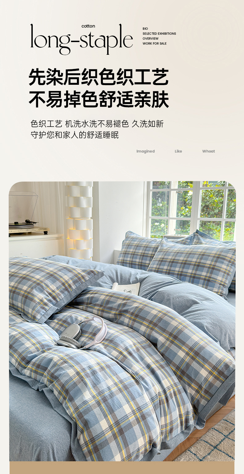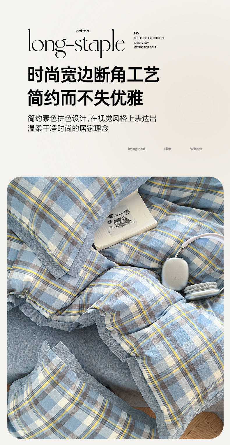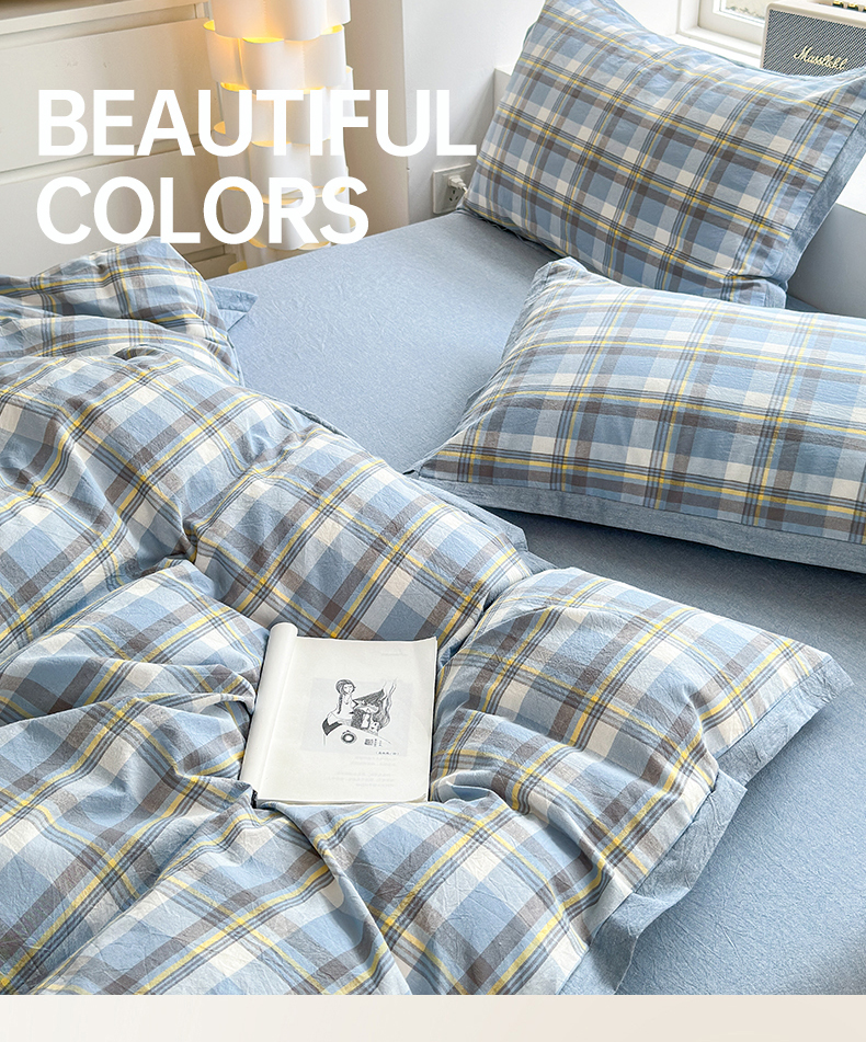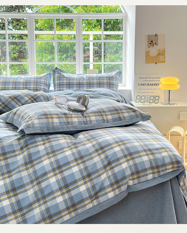 当前位置: 91家纺网 > 商品网购 > 床品套件 > 四件套 > 色织四件套 > 晚依家纺 2024新款全棉色织水洗棉宽边断角四件套 幸福恋曲-蓝