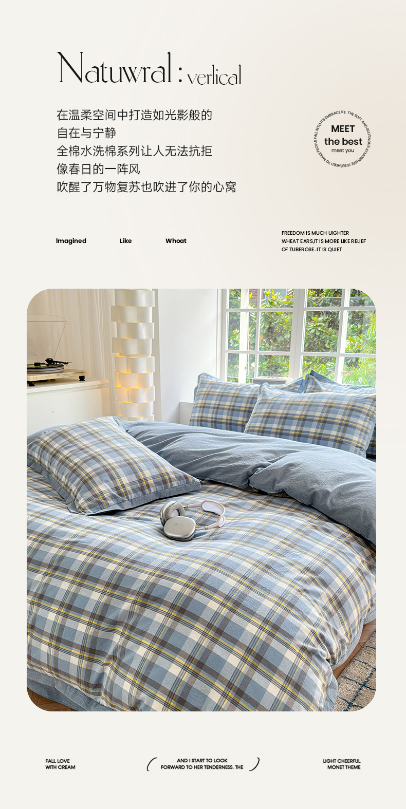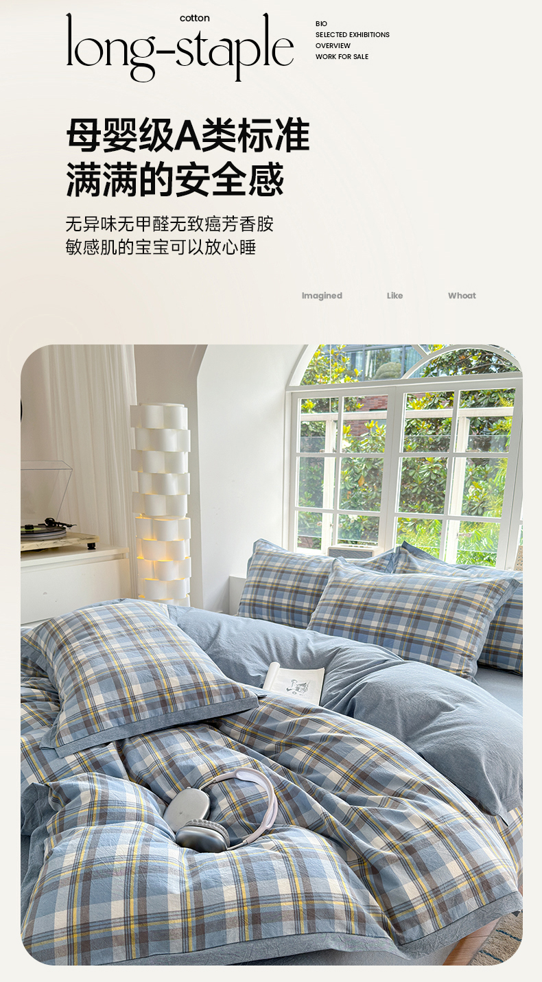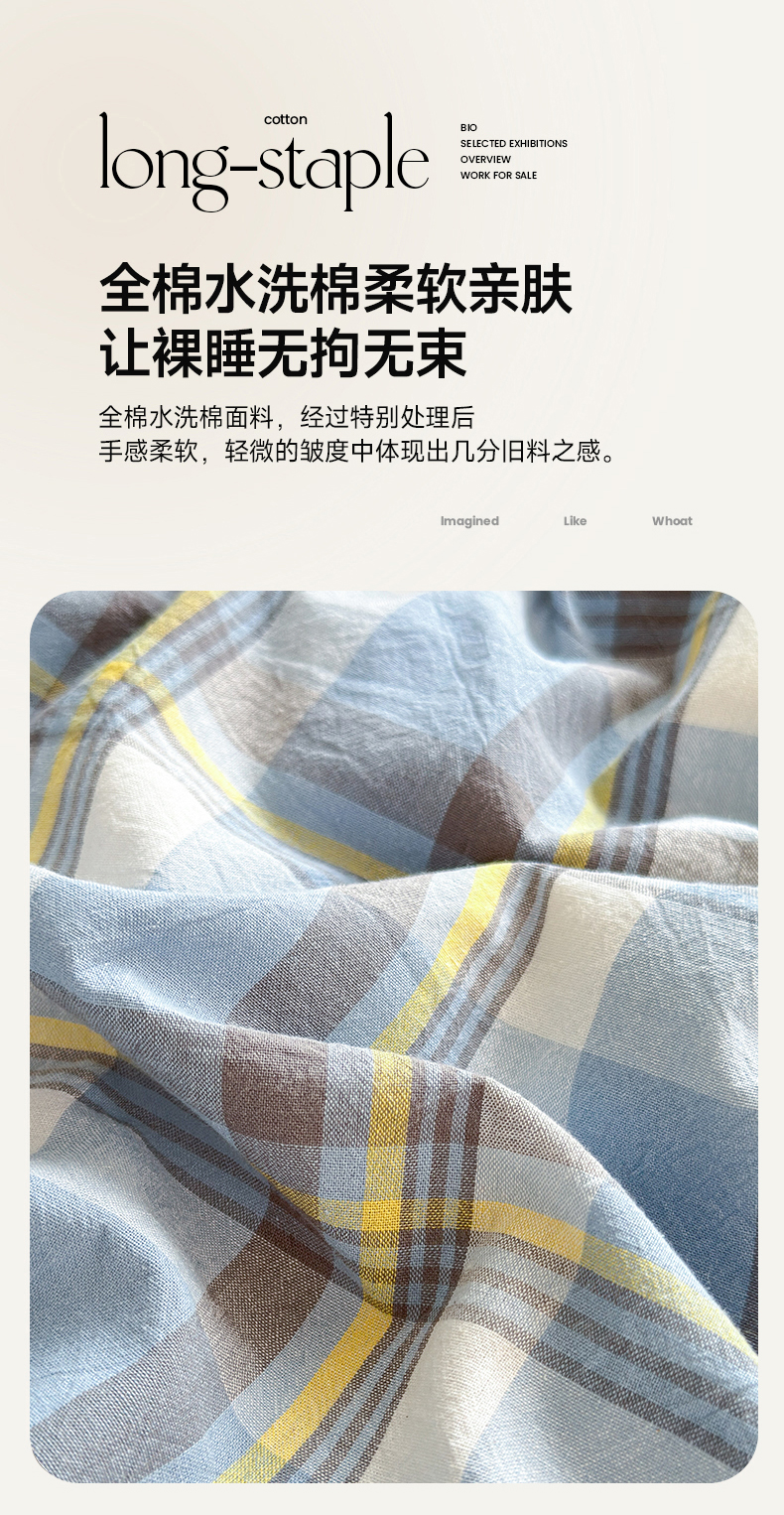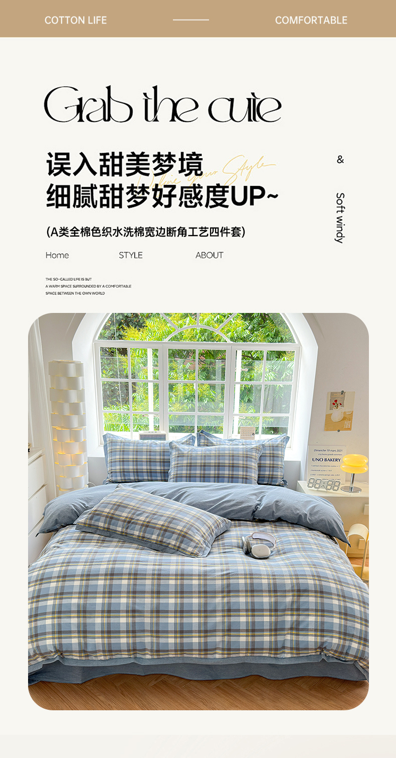 当前位置: 91家纺网 > 商品网购 > 床品套件 > 四件套 > 色织四件套 > 晚依家纺 2024新款全棉色织水洗棉宽边断角四件套 幸福恋曲-蓝