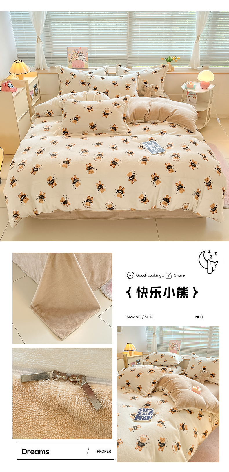 商品名称:2024新款A类AB版加厚保暖双面牛奶绒印花四件套--小清新系列 快乐小熊