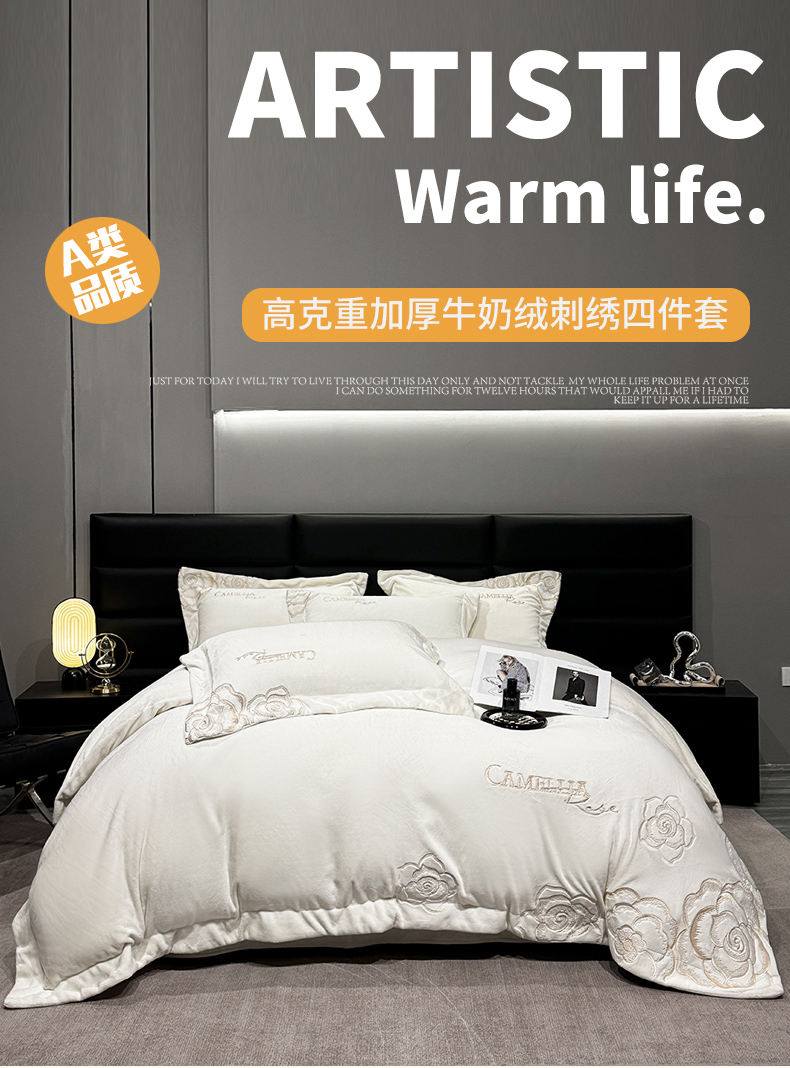 (总)星蕴家纺 2024新款220克全消光牛奶绒四件套-马德里,高级灰,贵族白,奶咖色,藕粉色