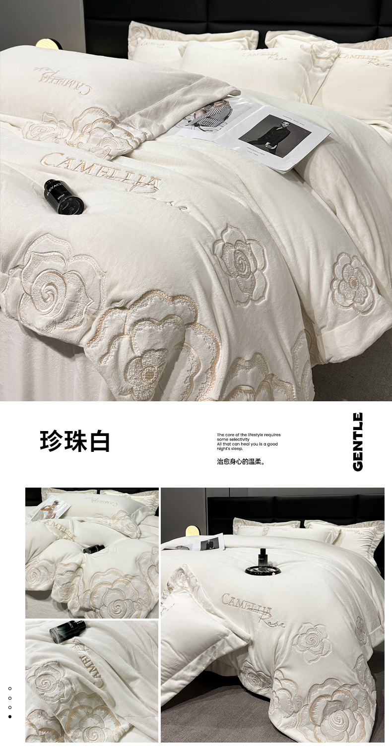 商品名称:星蕴家纺 2024新款全消光牛奶绒四件套-爱丽丝 珍珠白