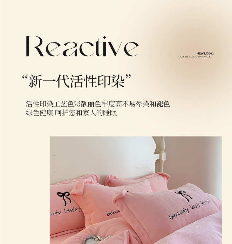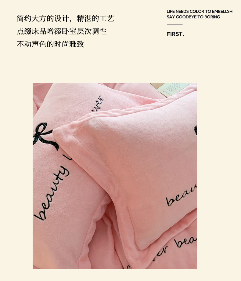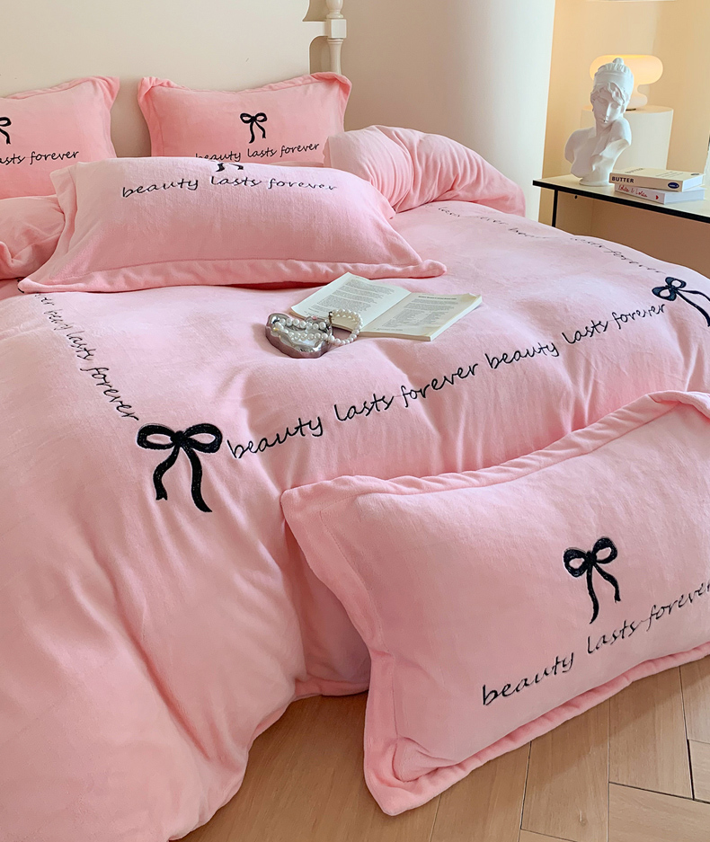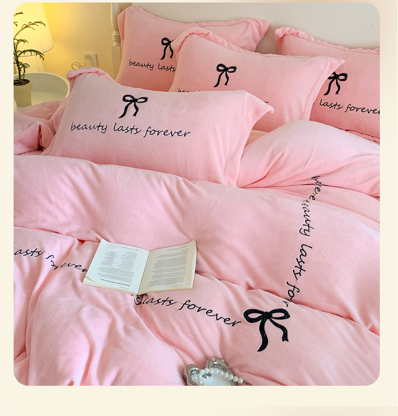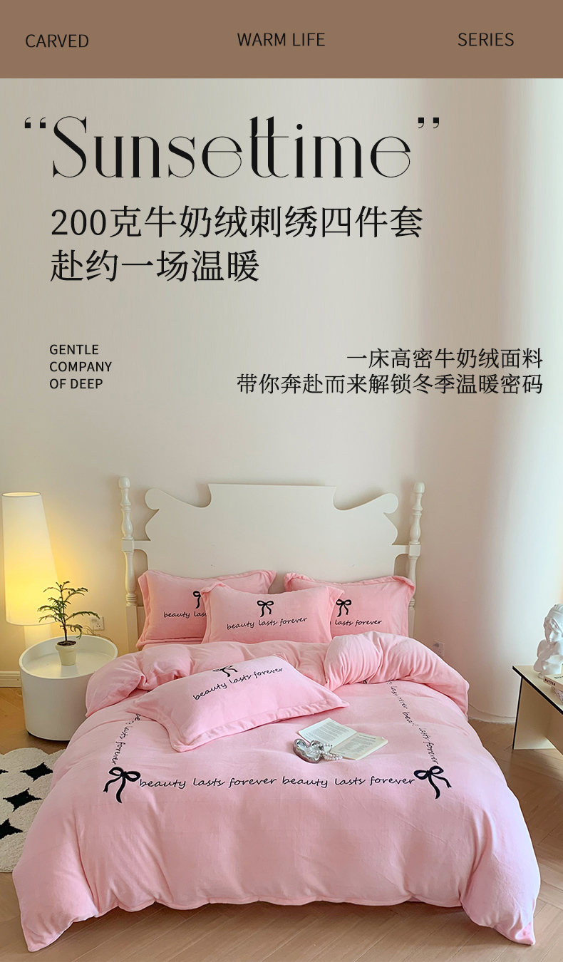 当前位置: 91家纺网 > 商品网购 > 床品套件 > 四件套 > 牛奶绒四件套 > 你好美丽 2025新款200克牛奶绒四件套--蝴蝶结 蝴蝶结粉
