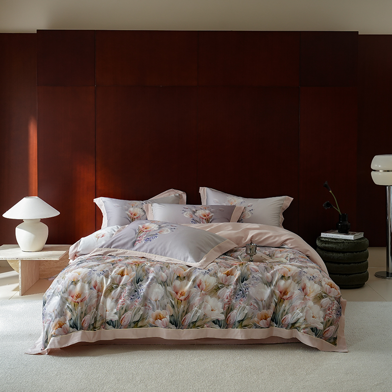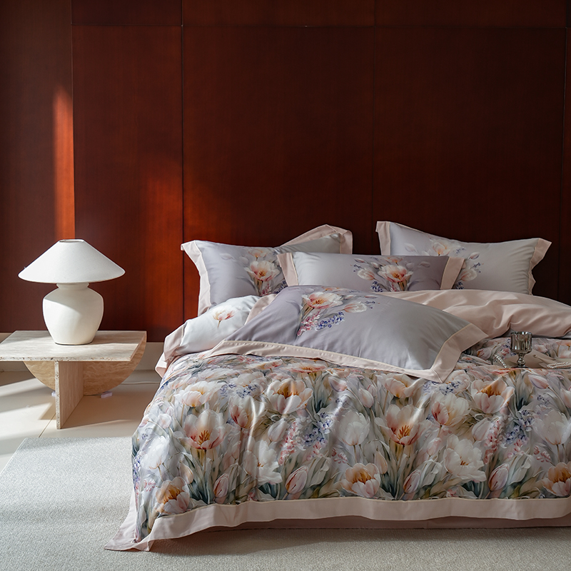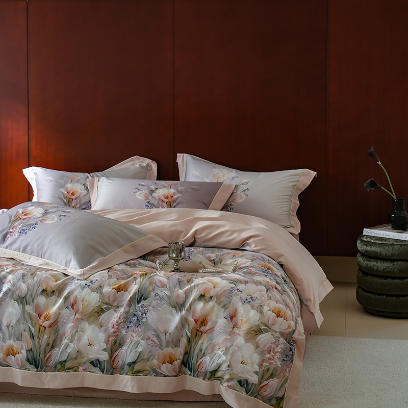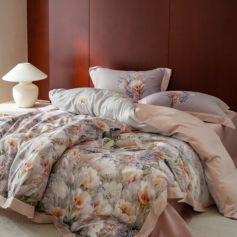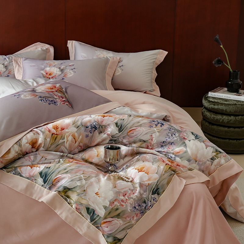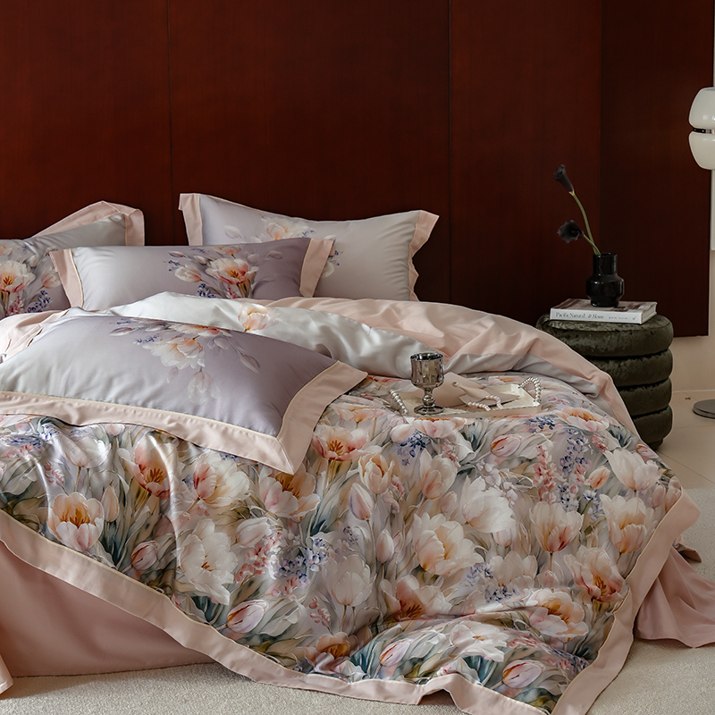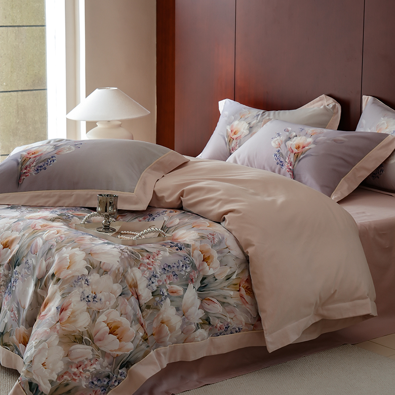 2024新款天丝棉磨毛宽边+嵌条印花四件套 花满楼-玉