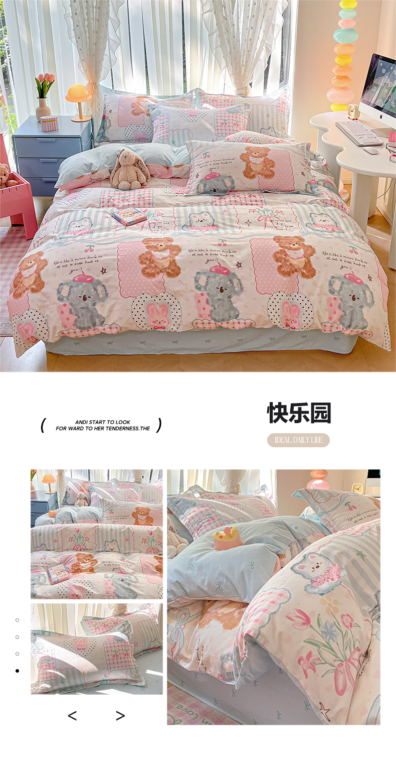 当前位置: 91家纺网 > 商品网购 > 床品套件 > 四件套 > 全棉普通四件套 > 涵宸家纺 2025新款全棉印花四件套 A快乐园