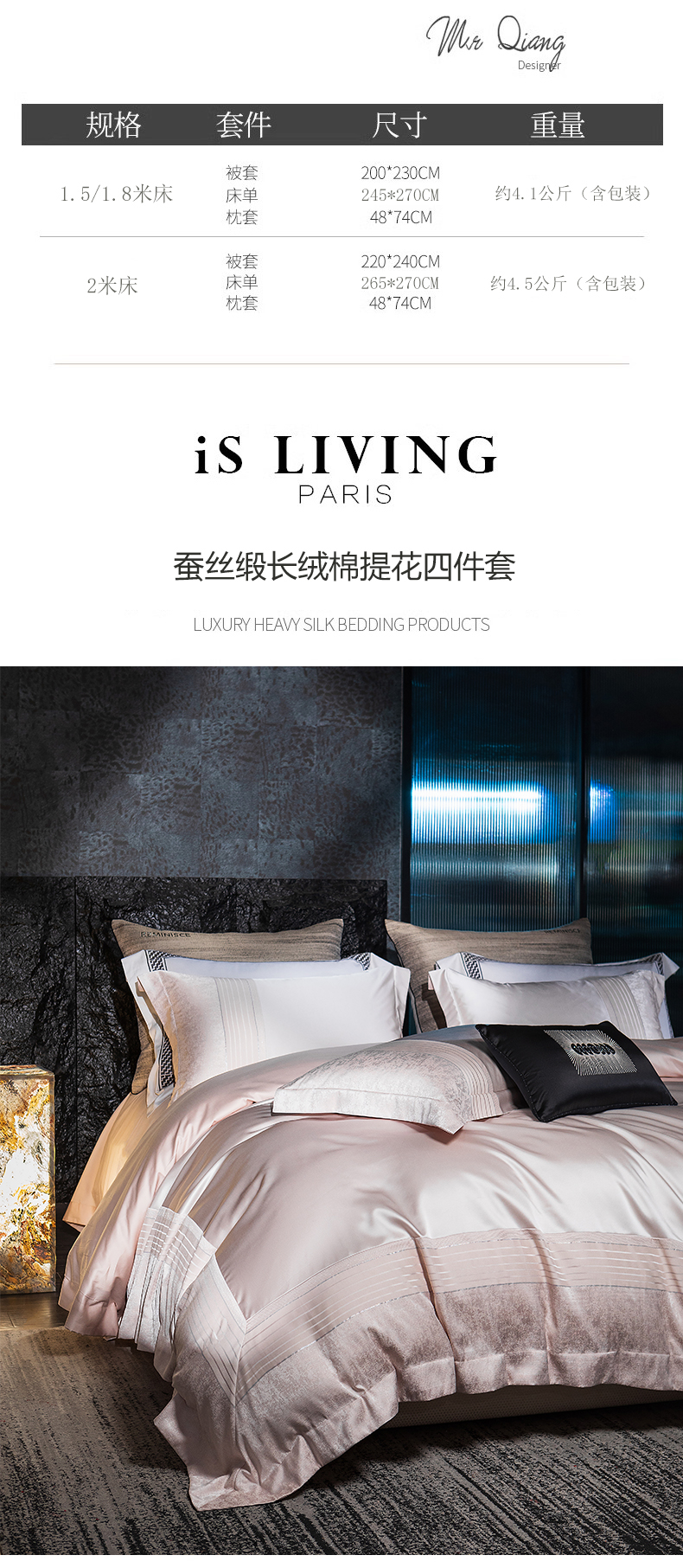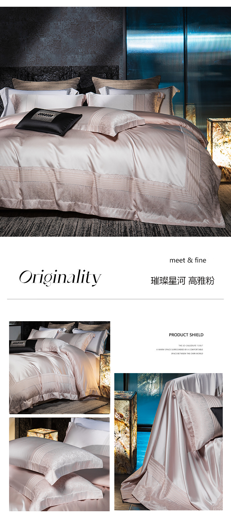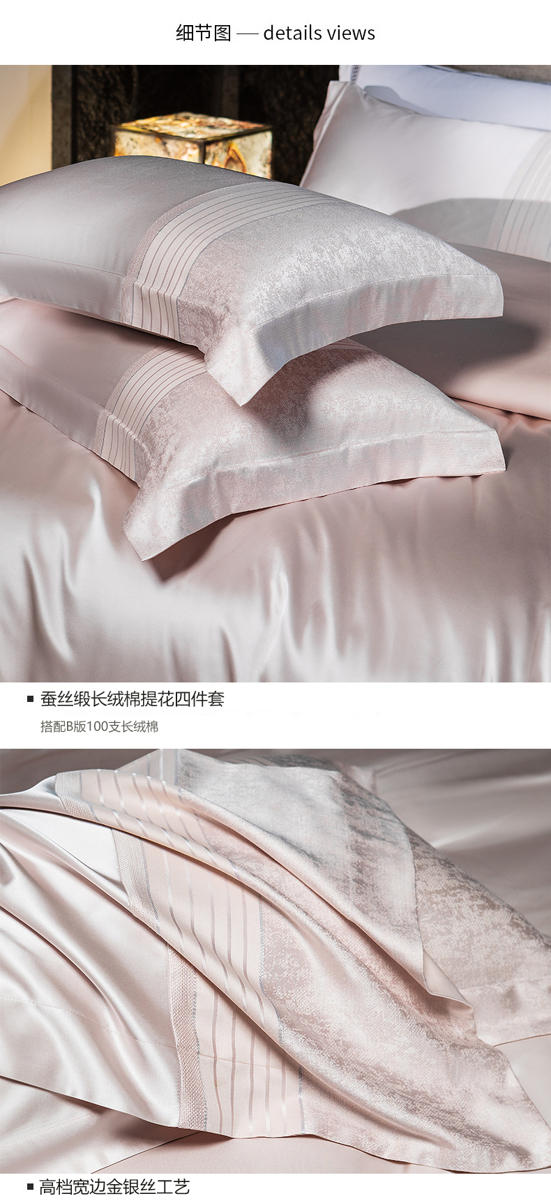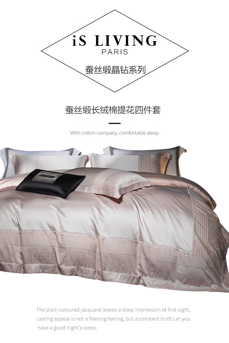 商品名称:诗黛尔2025春夏新款缎长绒棉提花晶钻系列四件套--璀璨星河系列 璀璨星河-高雅粉