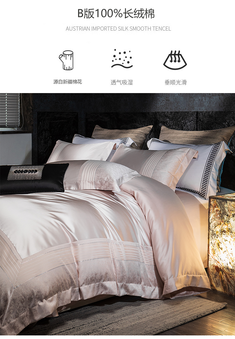 诗黛尔2025春夏新款缎长绒棉提花晶钻系列四件套--璀璨星河系列 璀璨星河-高雅粉