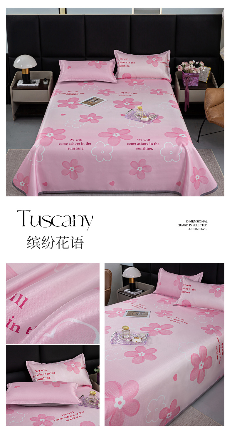 商品名称:念家居 2025新款轻奢可机洗水洗床单款高密大版斜纹冰丝凉席三件套 缤纷花语