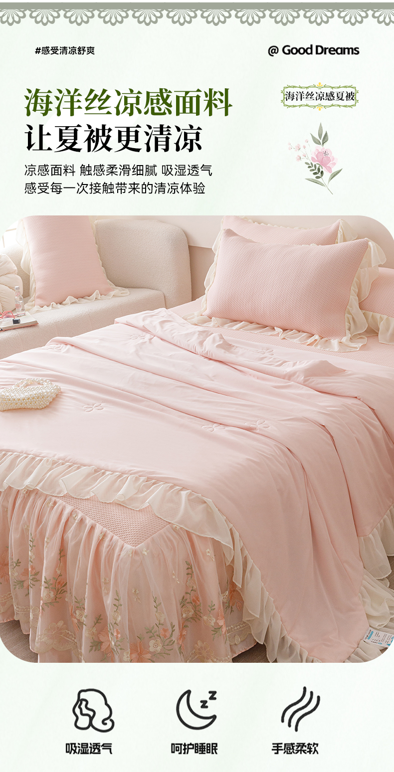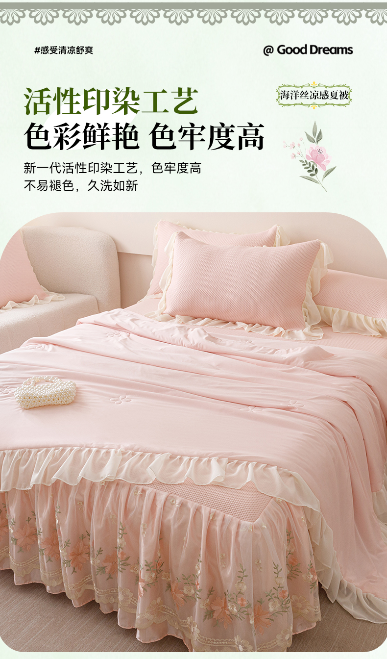 商品名称:好儿喜家纺 2025新款海洋丝凉感夏被四件套(此款控价所有尺寸(劵后)利润不得低于50元) 浅粉