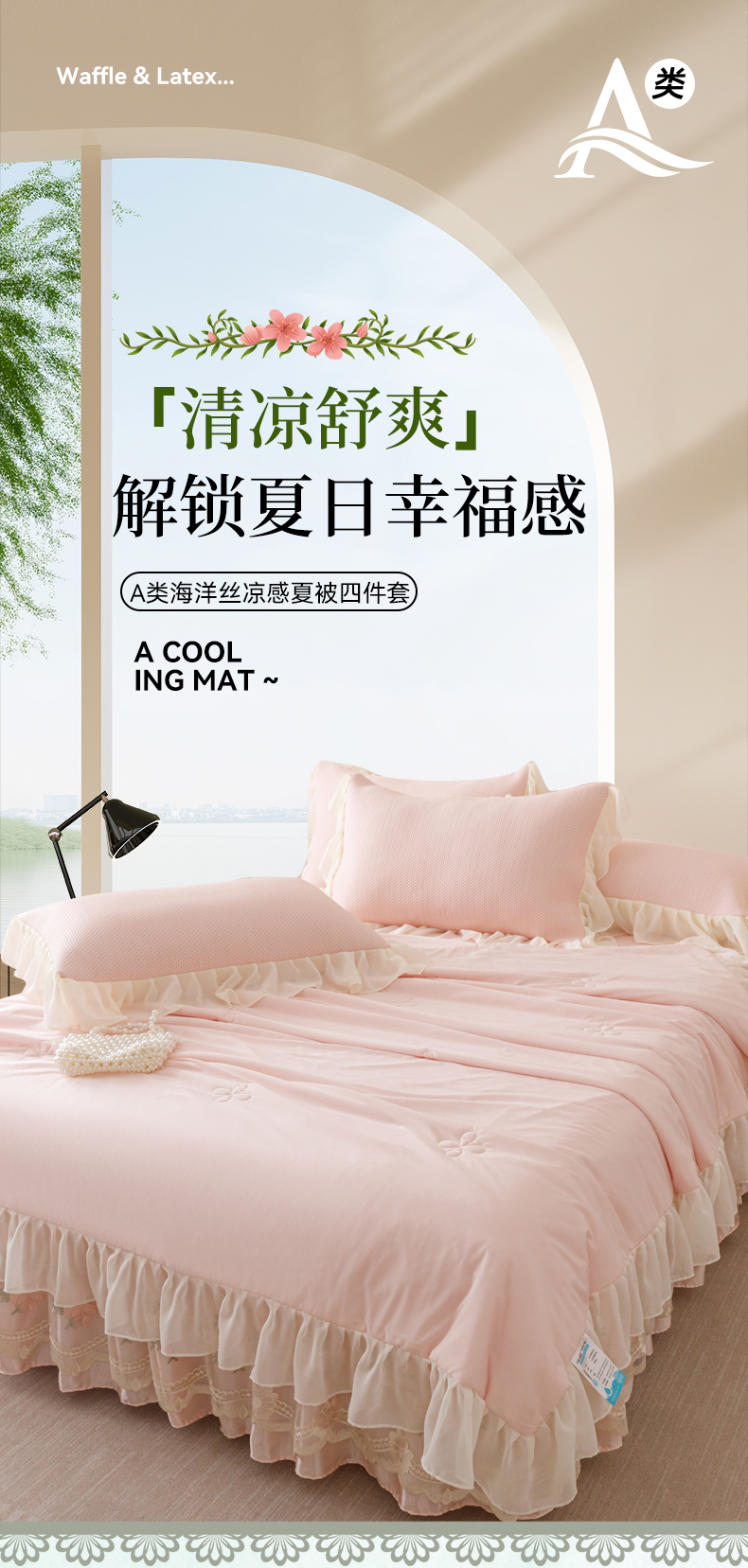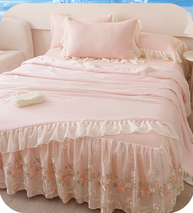 好儿喜家纺 2025新款海洋丝凉感夏被四件套(此款控价所有尺寸(劵后)利润不得低于50元) 浅粉