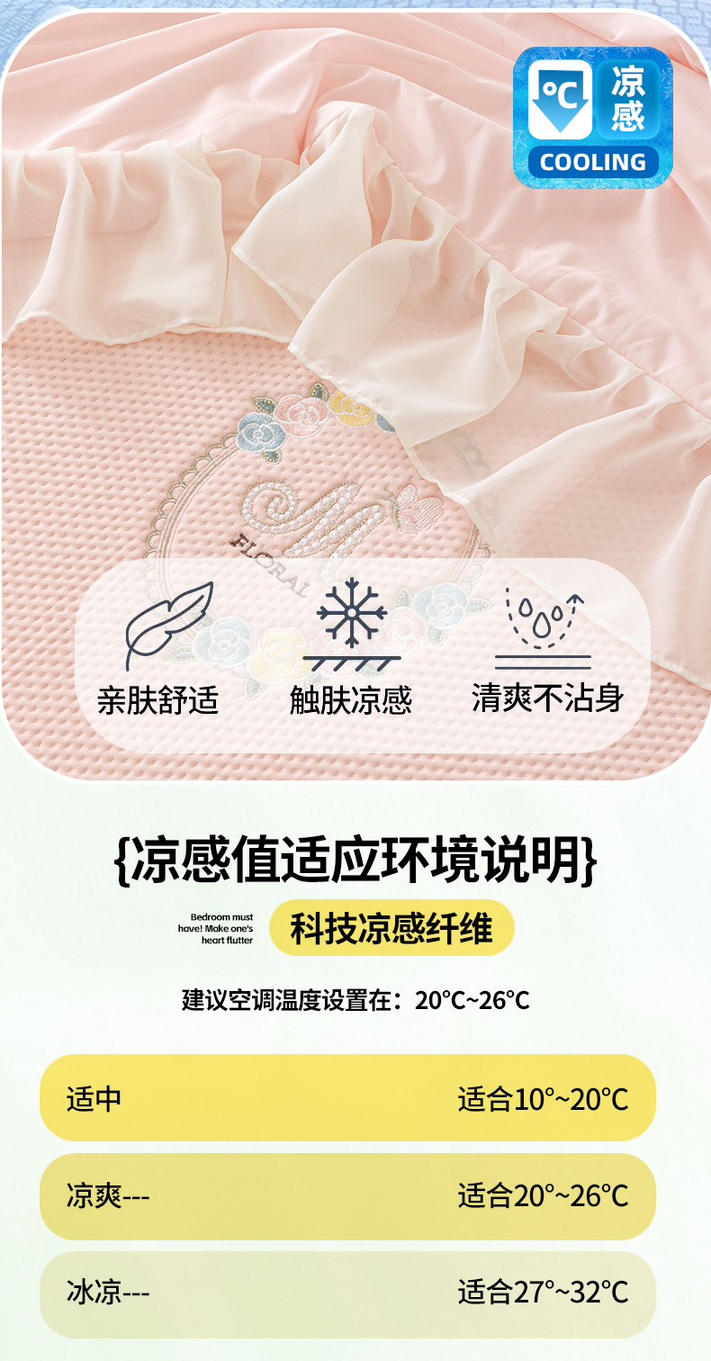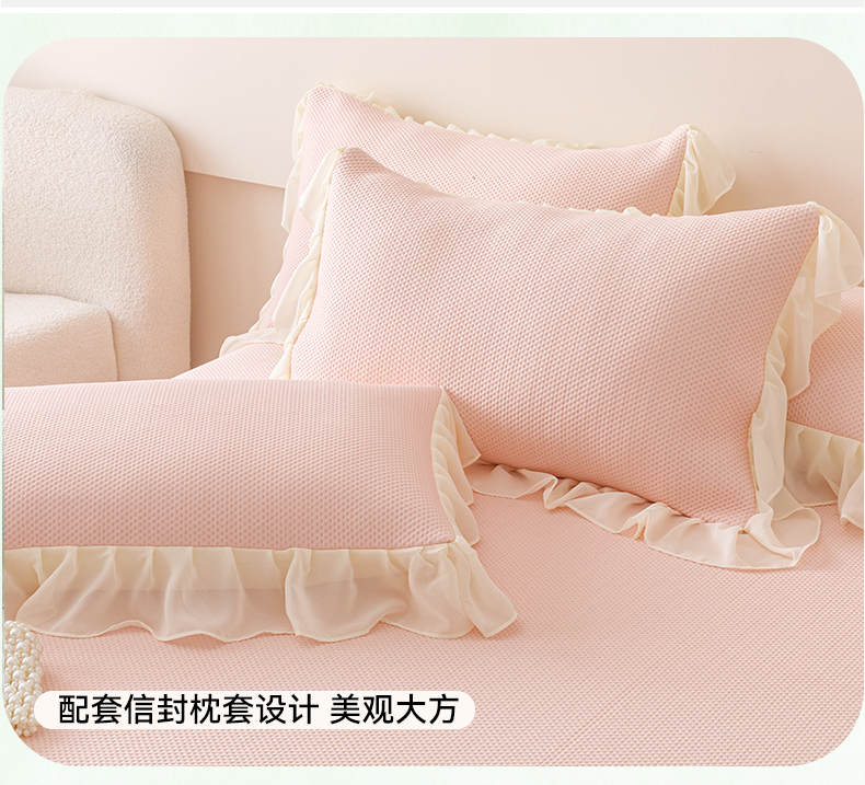 (总)好儿喜家纺 2024新款伊芙琳凉席床裙三件套,浅绿,橄榄绿,奶白,浅粉,浅蓝