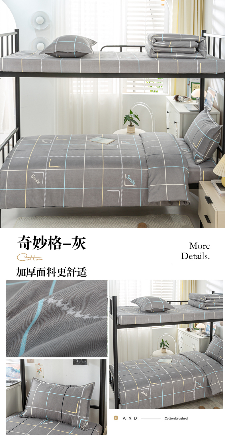 当前位置: 91家纺网 > 商品网购 > 床品套件 > 四件套 > 磨毛活性四件套 > 上学郎家居 2025新款学生宿舍130克加厚磨毛三件套 恋语格-兰