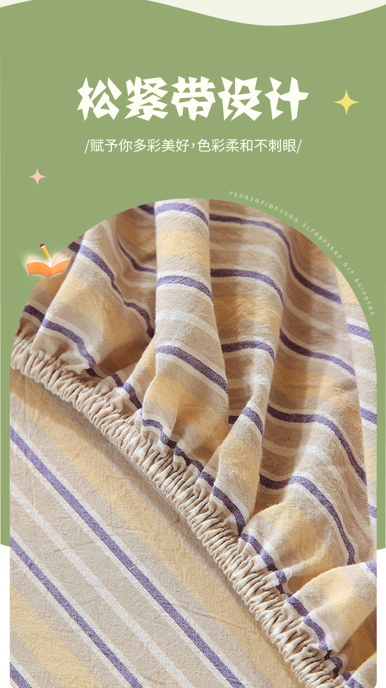 • 91家纺网 家纺一手货源 找家纺 春皖家纺 2025新款学生季全棉纯棉色织AB版水洗棉单品系列-单床笠 床笠单件 素雅-杏黄纹