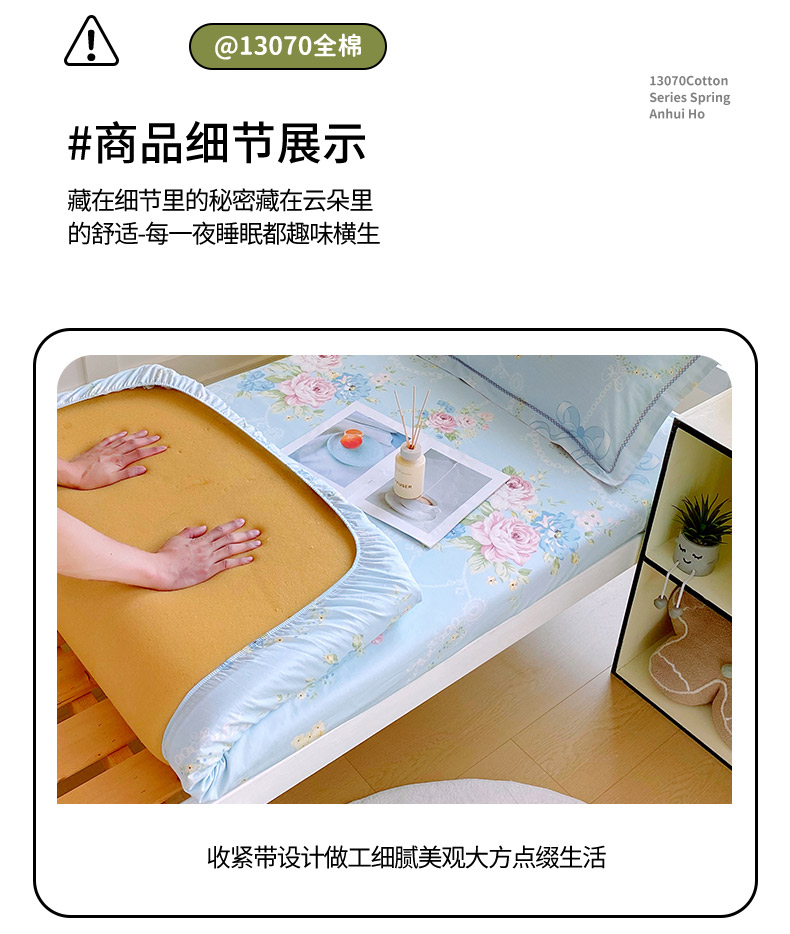 • 91家纺网 家纺一手货源 找家纺 春皖家纺 2025新款学生季全棉纯棉13070印花单床笠 床笠单件 花蝶柔依