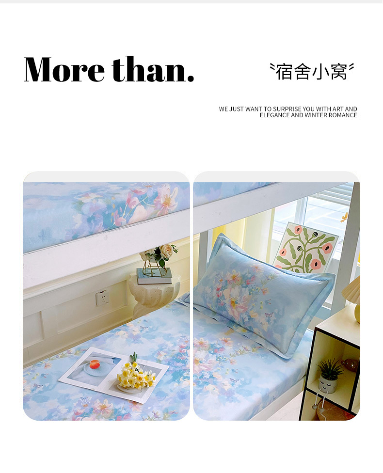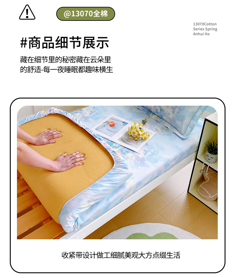 • 91家纺网 家纺一手货源 找家纺 春皖家纺 2025新款学生季全棉纯棉13070印花单床笠 床笠单件 玉蝶逐香
