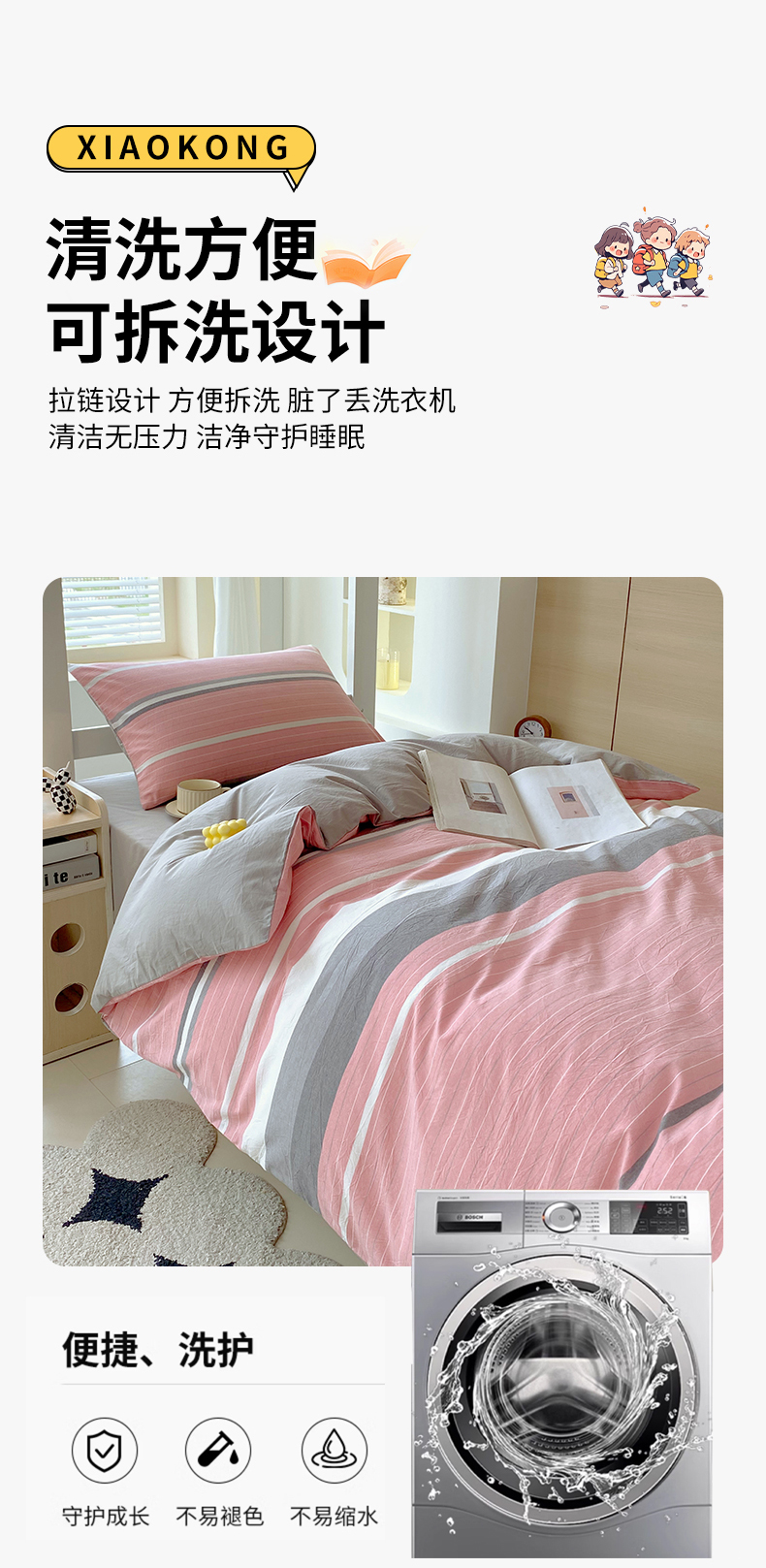 当前位置: 91家纺网 > 商品网购 > 床品套件 > 四件套 > 全棉普通四件套 > 春皖家纺 2025春夏新款AB版全棉纯棉色织水洗棉学生三件套六件套 素雅-蔻粉