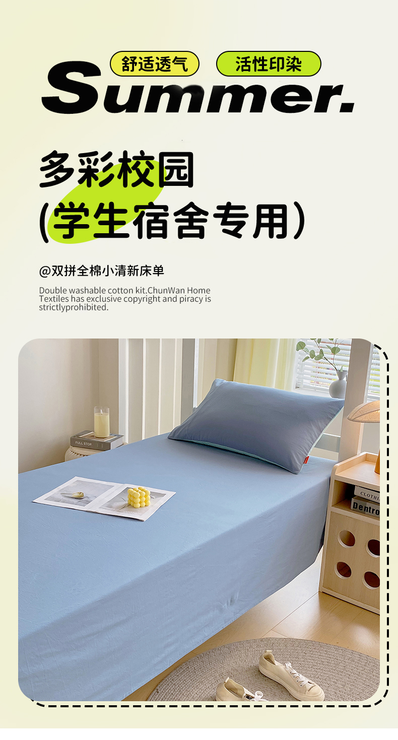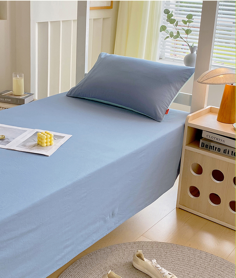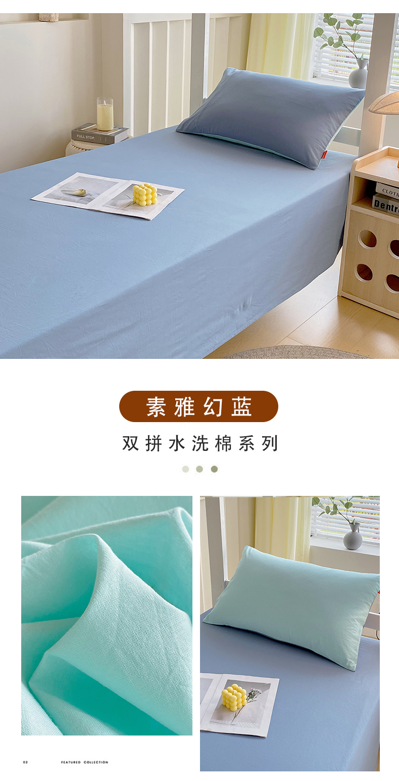 商品名称:春皖家纺 2025新款学生季A类双拼水洗棉小清新单品系列床单单件-单床单 素雅幻蓝