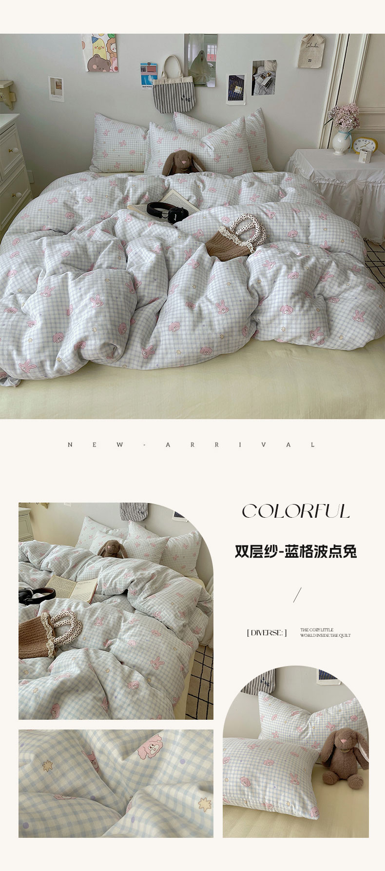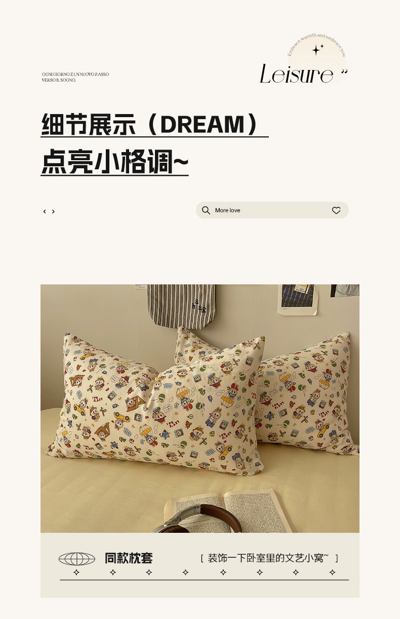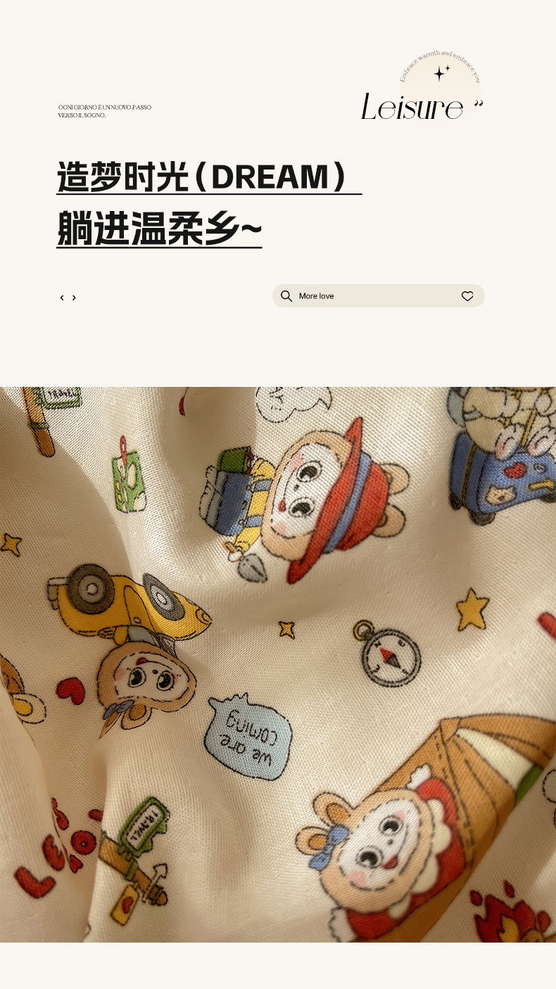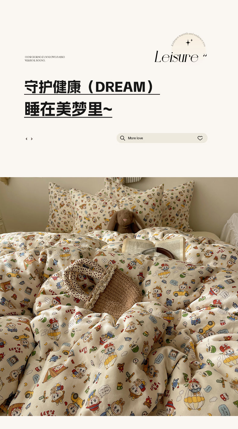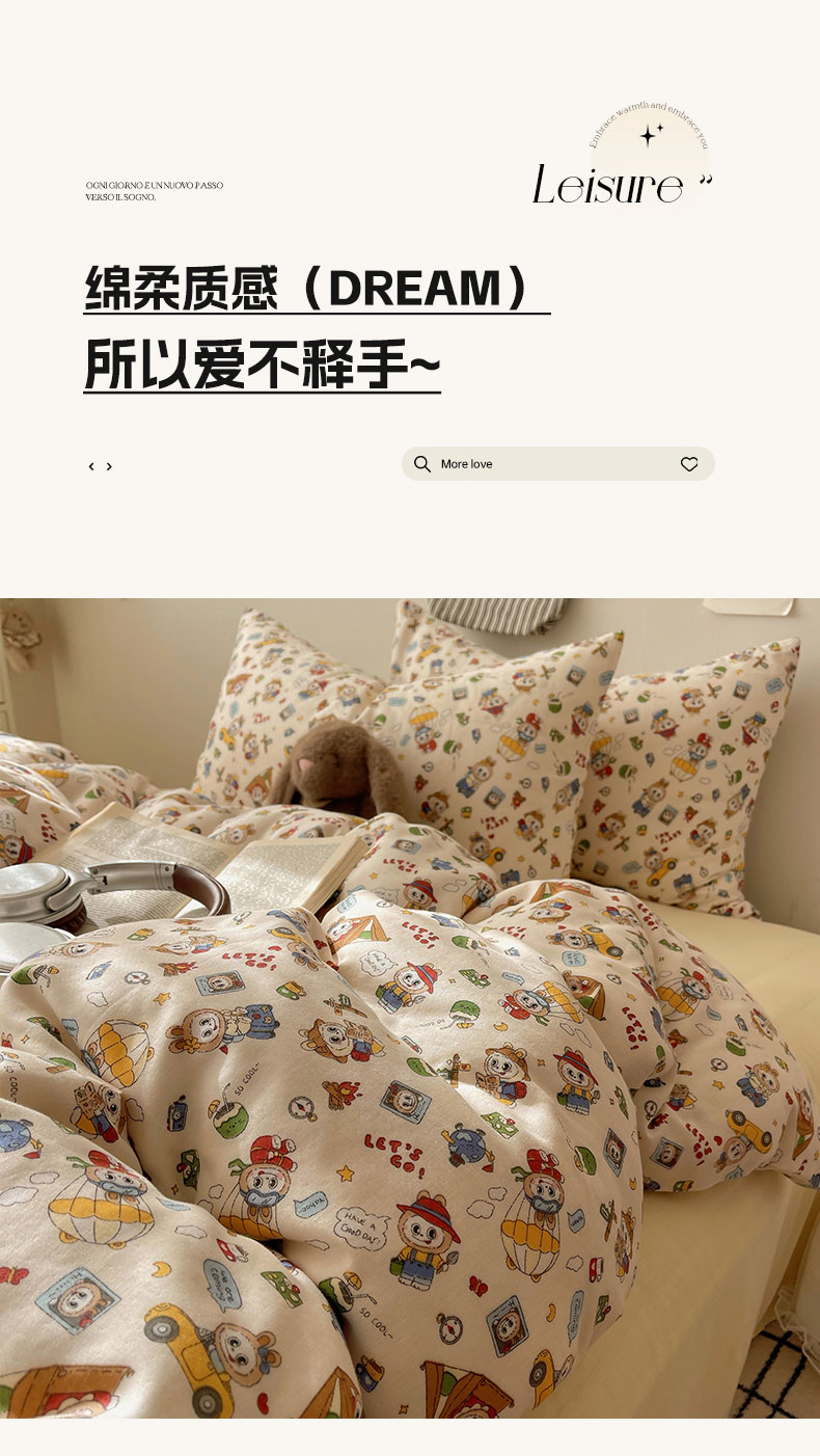 商品名称:(总)六巷胡同 2025新款INS卡通A类全棉纯棉双层纱四件套学生季三件套