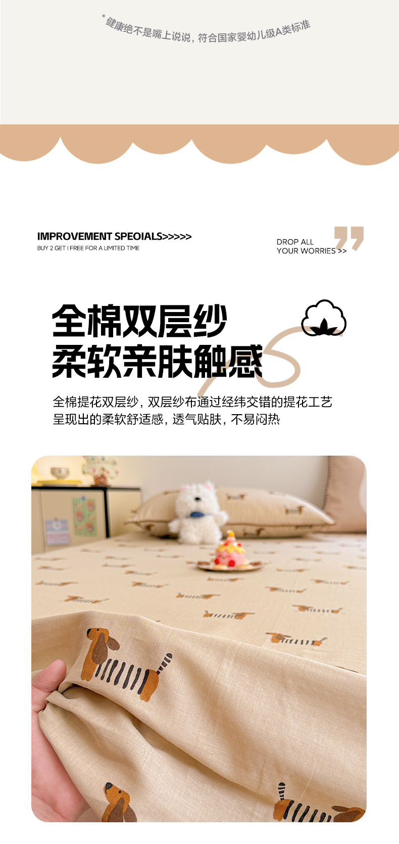 当前位置: 91家纺网 > 商品网购 > 床上用品 > 床单 > 沐辰 2025新款A类全棉纯棉双层纱单品床单床单单件单床单 衬衫狗狗