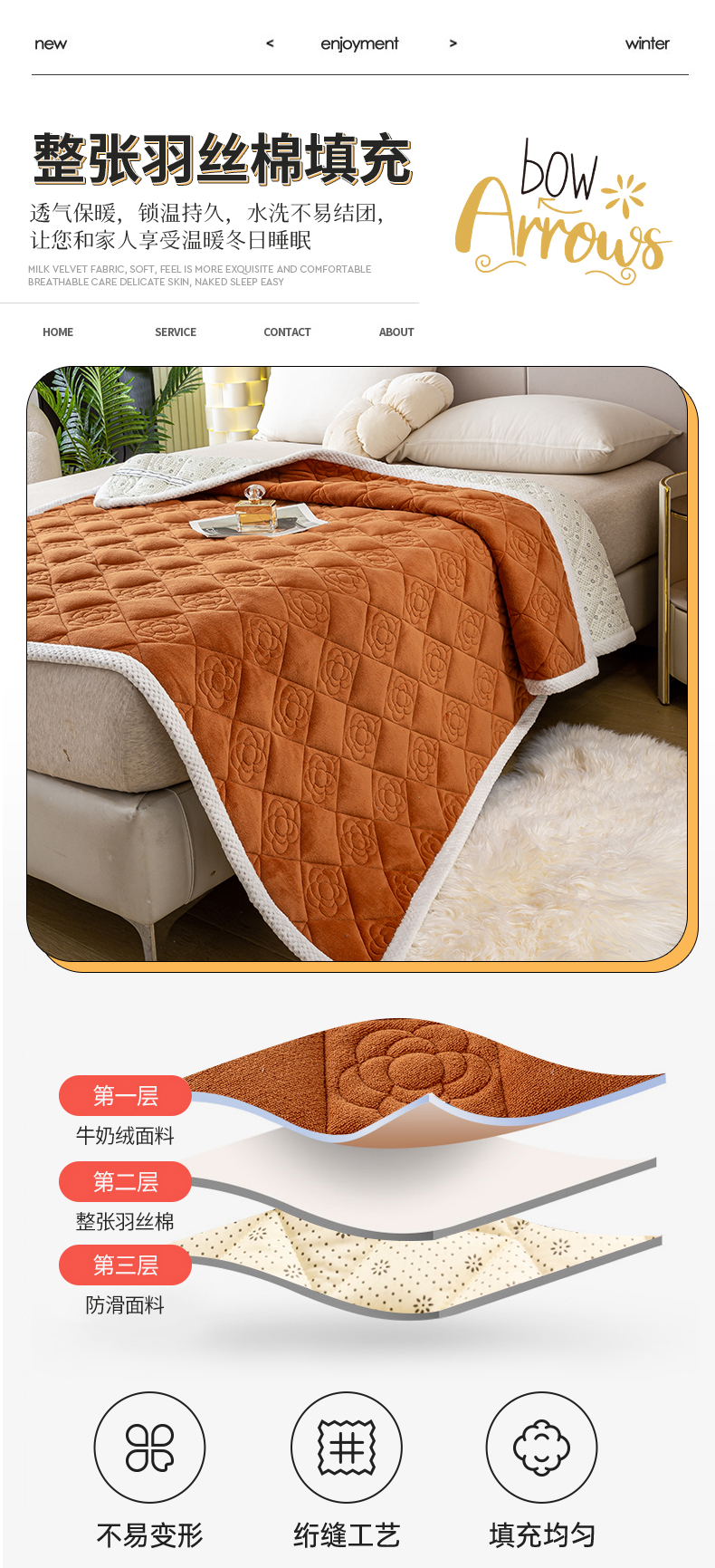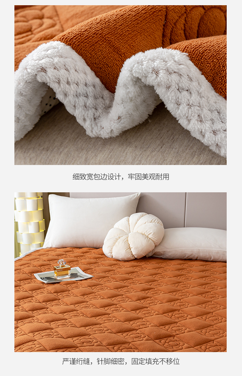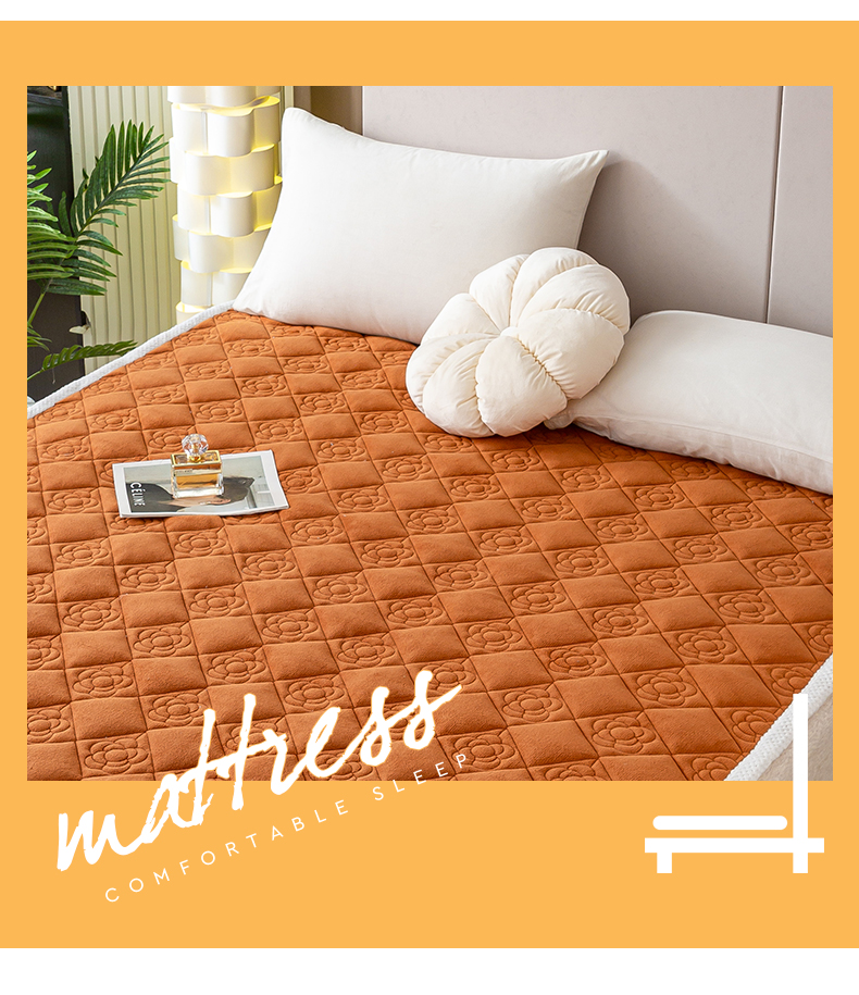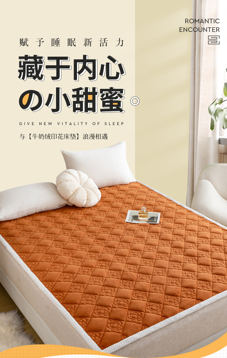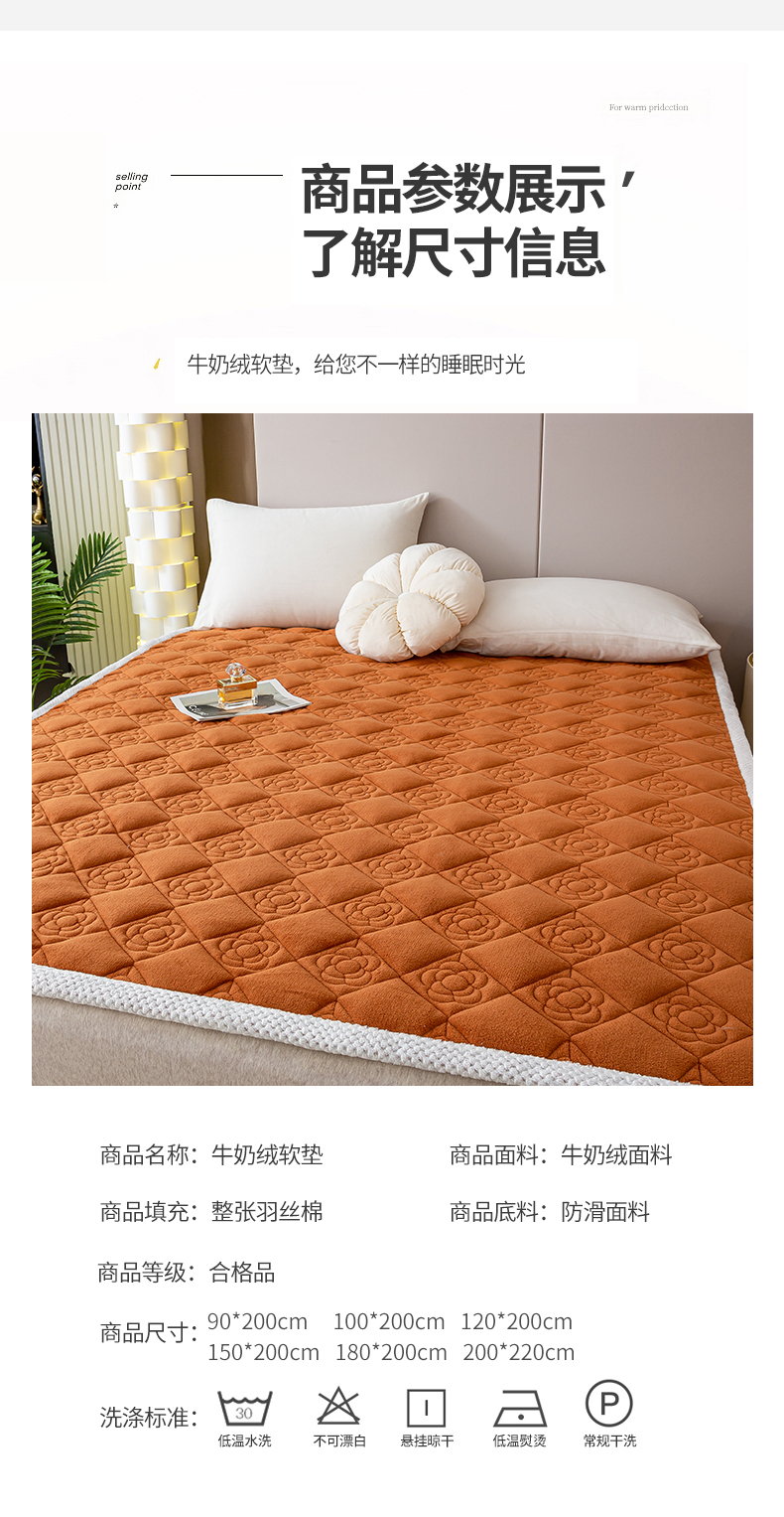 商品名称:正邦家纺 2025新款学生宿舍上下铺牛奶绒刺绣玫瑰花夹棉床垫床护垫床褥子 枫糖橘棕