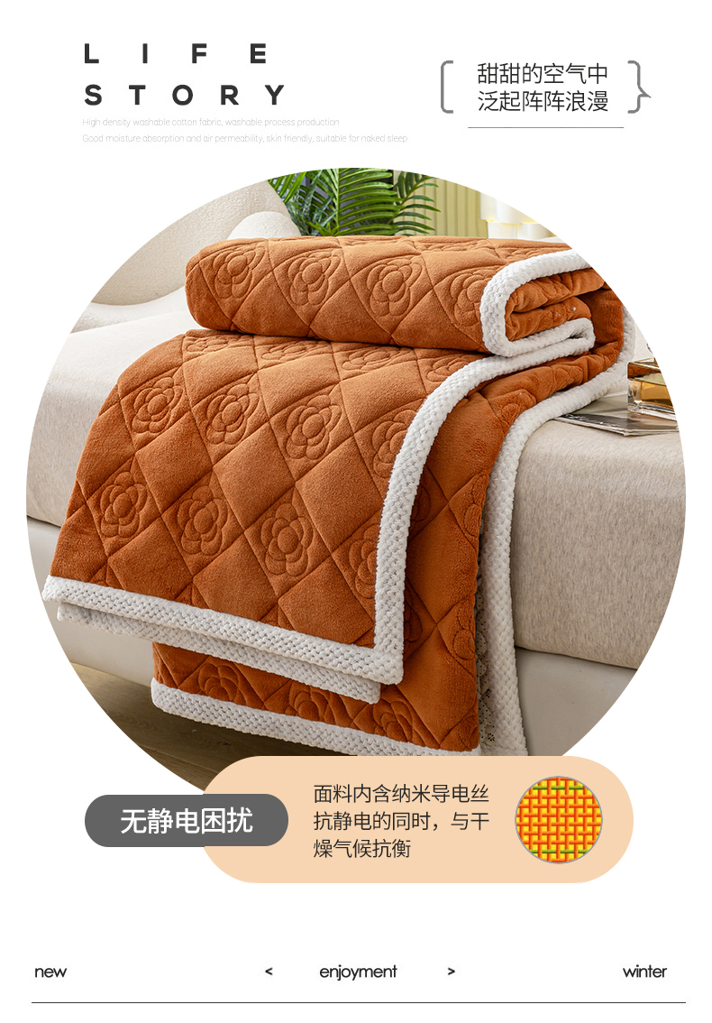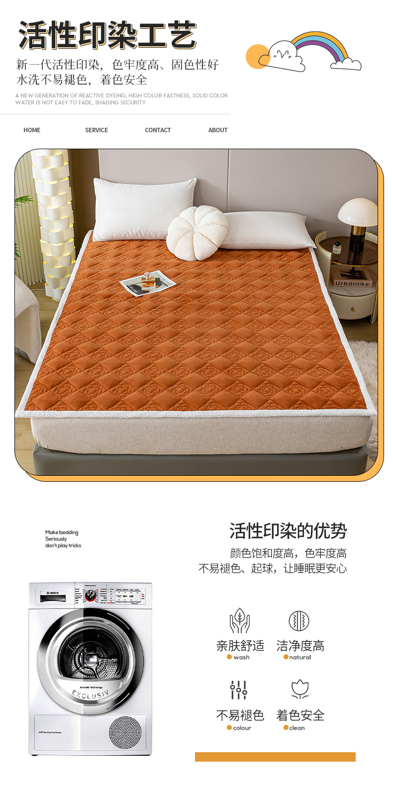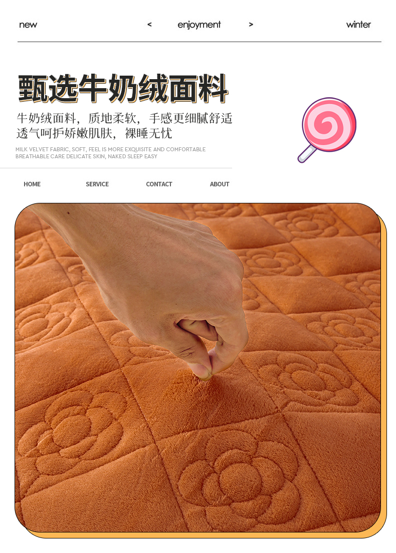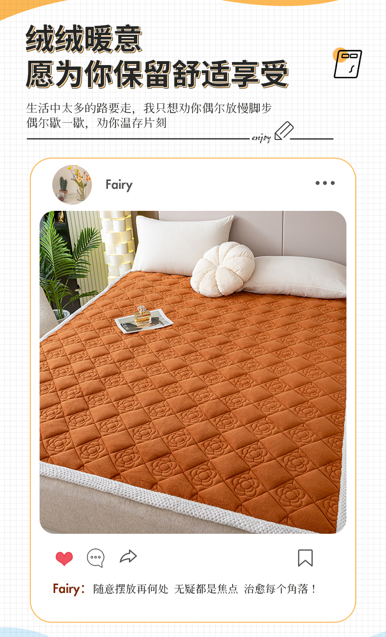 商品名称:正邦家纺 2025新款学生宿舍上下铺牛奶绒刺绣玫瑰花夹棉床垫床护垫床褥子 枫糖橘棕